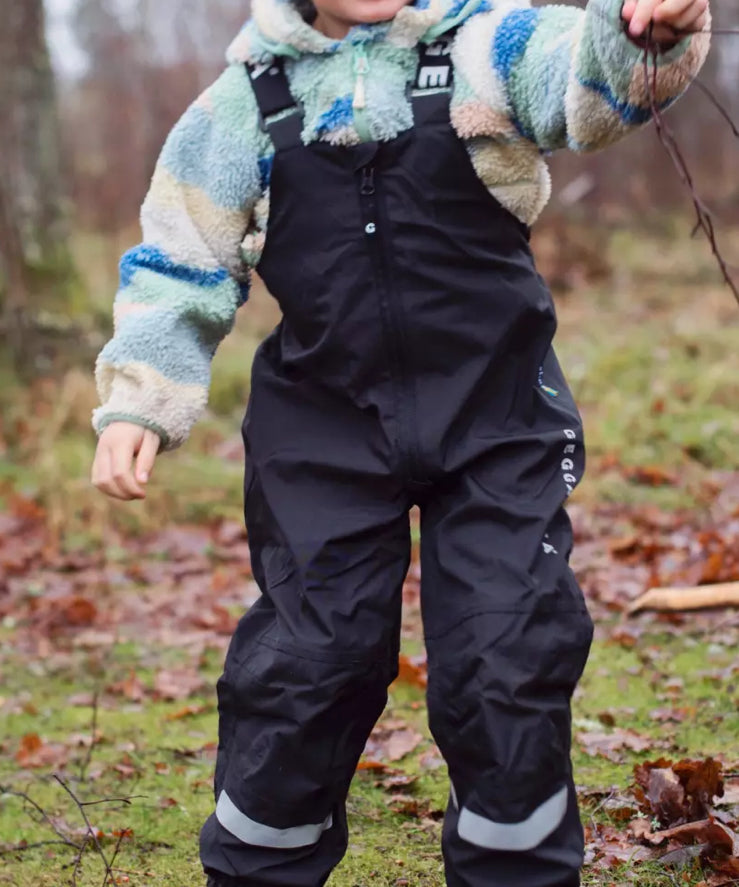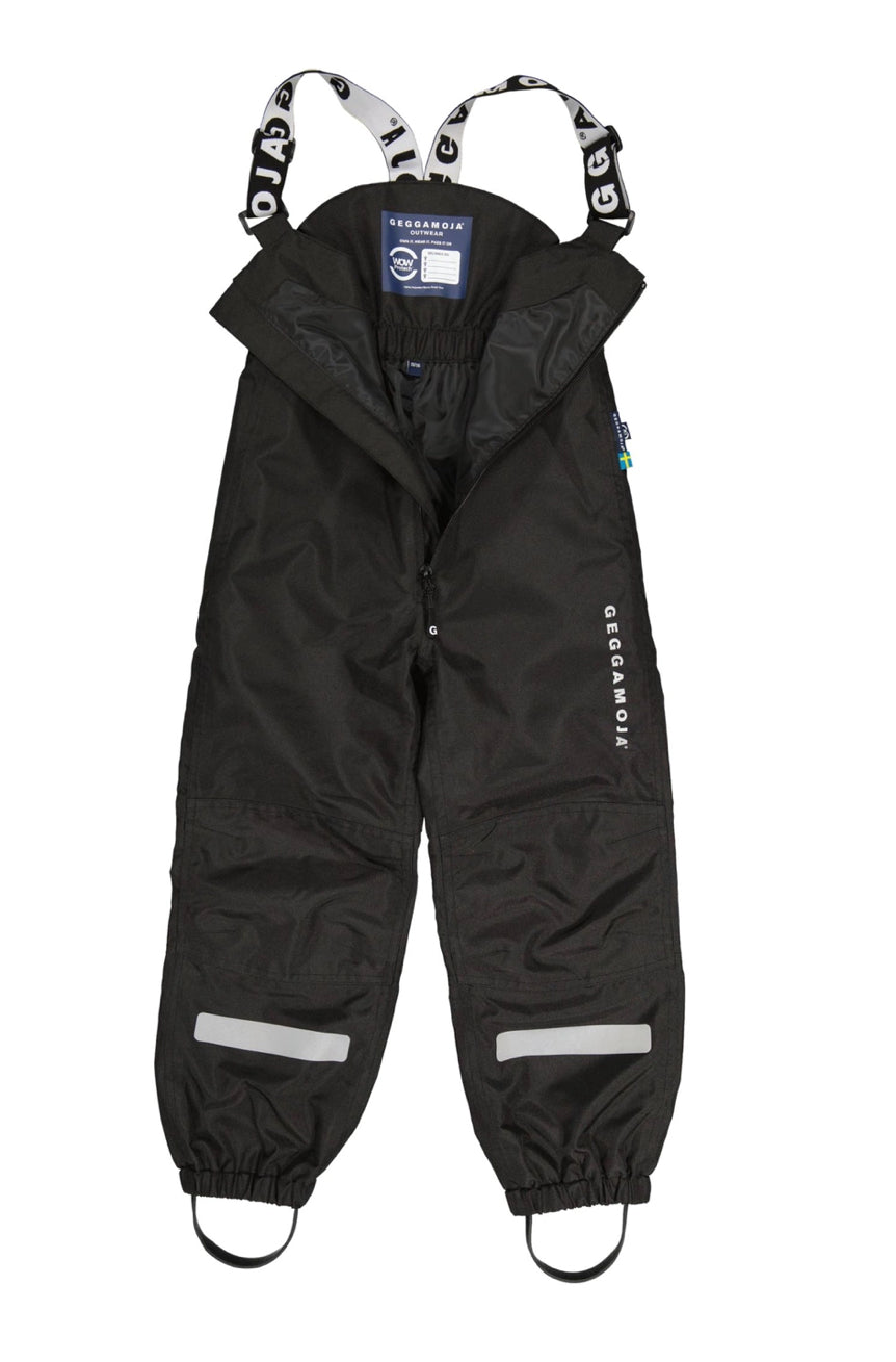 En vind och vattentät skalbyxa tillverkad i 100% Polyester Taslan. Reglerbara hängslen och förstärkta knän och bakdel. Skalbyxan har tejpade sömmar. Skalbyxorna har mycket reflexer för bästa synlighet. Plagget har resår i benslut med elastiska skohällor. Denna byxa är rymlig i storleken vilket gör att ditt barn kan växa med den.