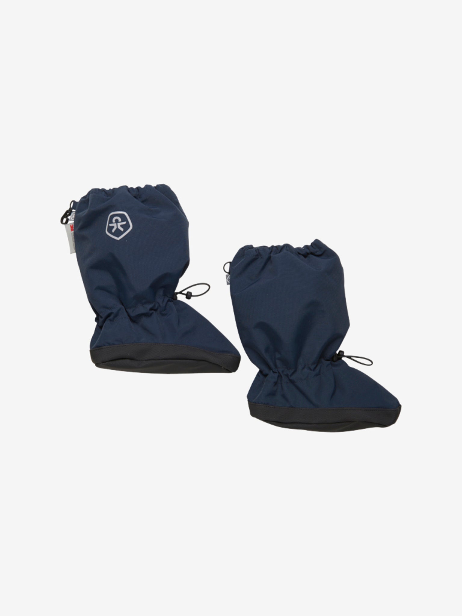 Enfärgade footies från COLOR KIDS. Materialet är andningsbart, vindtätt och vattentätt, så att ditt barn kan stanna ute i regn, snö och vind utan att bli kallt och vått. Provat vattenpelartryck på 20 000 mm. Footies har reflexer på sidan i form av en COLOR KIDS-logotyp. Footies har resår runt benen och fotleden. Vattentät gummibeläggning under sulan och 1 cm upp på foten, vilket säkerställer bra grepp så att de små lättare står fast. Footies har en praktisk plastklämma så att de kan förvaras tillsammans. De är gjorda av återvunnet material. Belagd med BIONIC-FINISH® ECO, som är en miljövänlig tätskikt som är biologiskt nedbrytbar och utan mjölämnen.