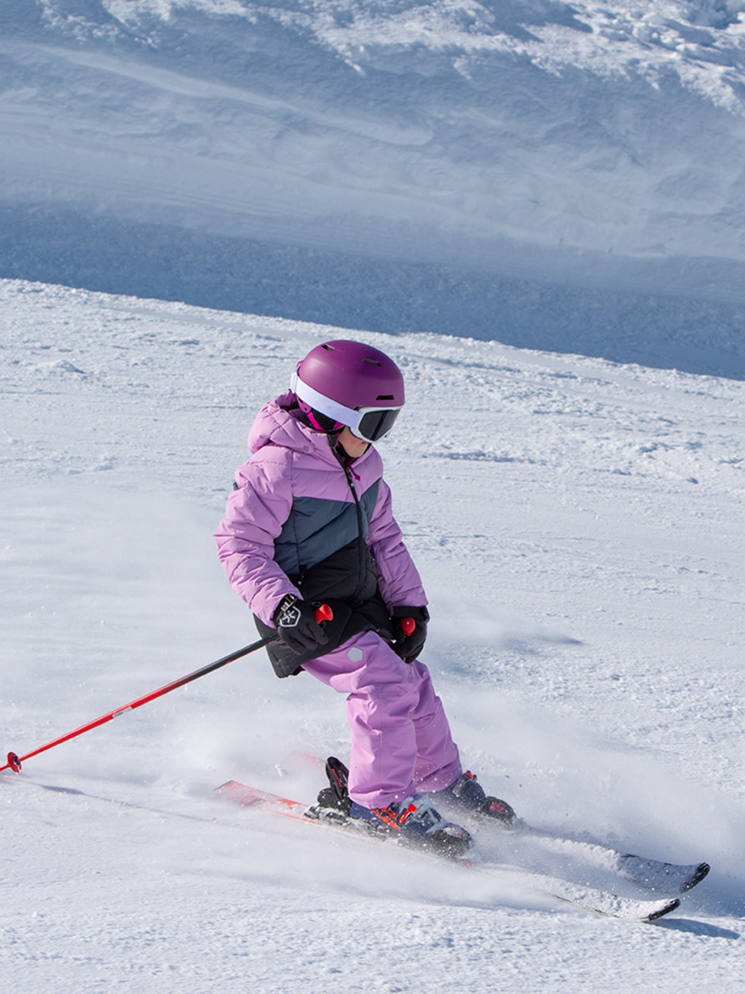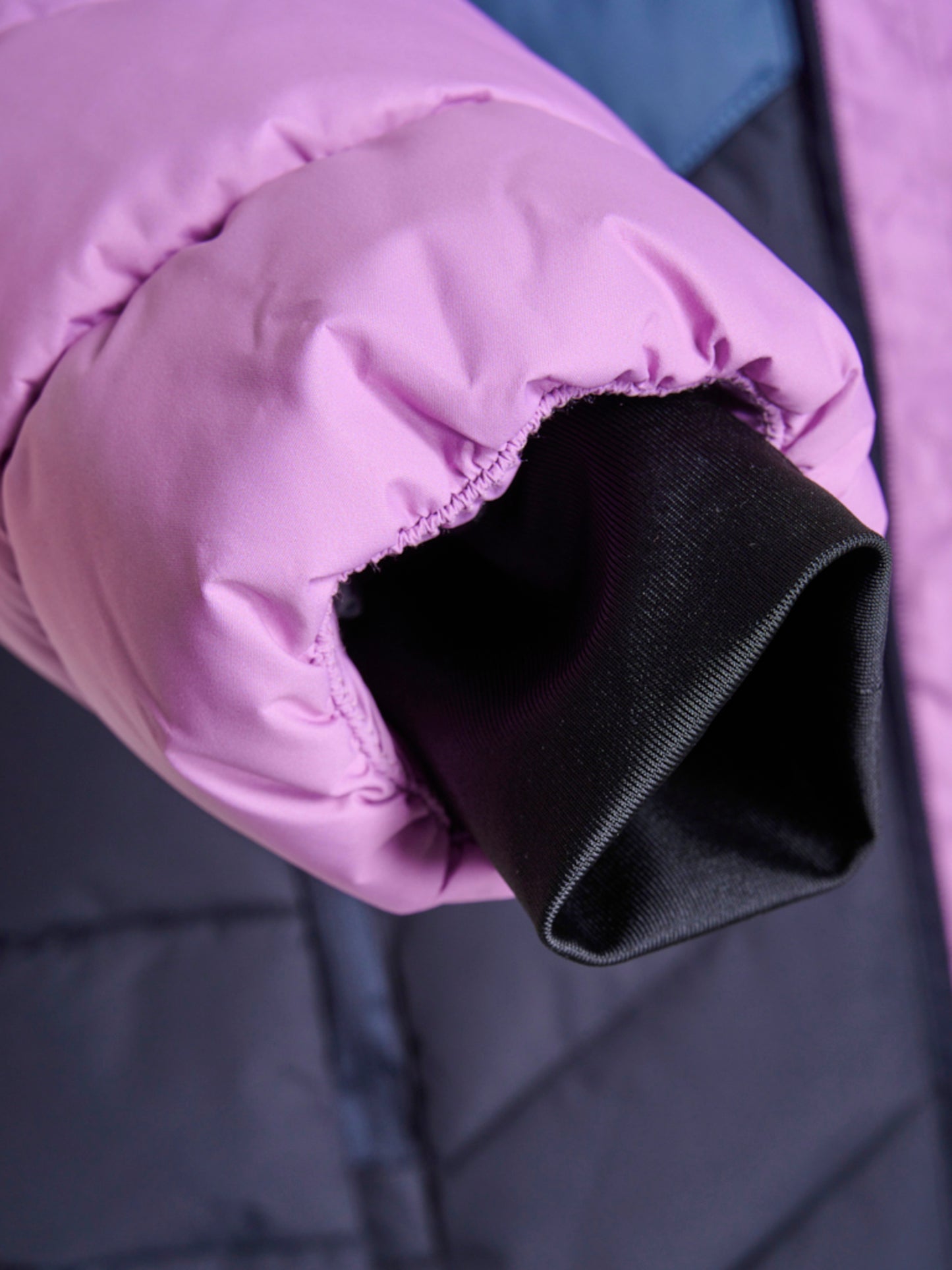 Smart färgblock varm quiltad snöjacka för ditt barn i slitstarkt material.