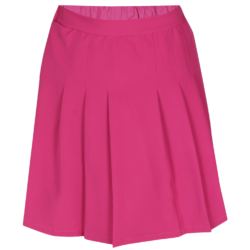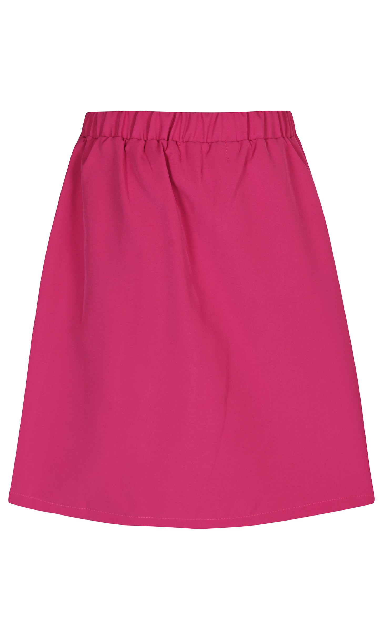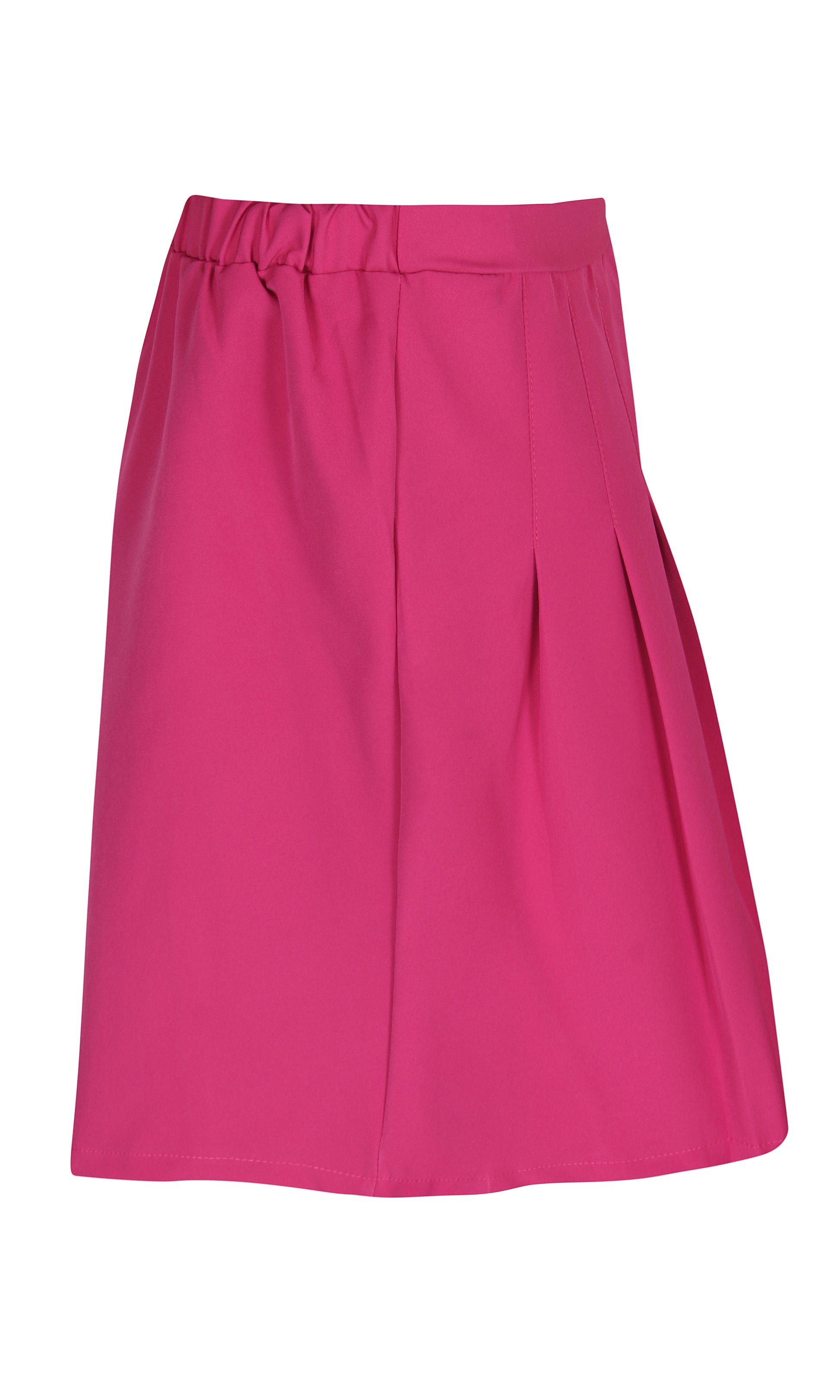 Kort knallrosa kjol med ställbar midja.Ser ut som en skoluniforms-kjol i modellen, bred plisserad fram och slät fram.