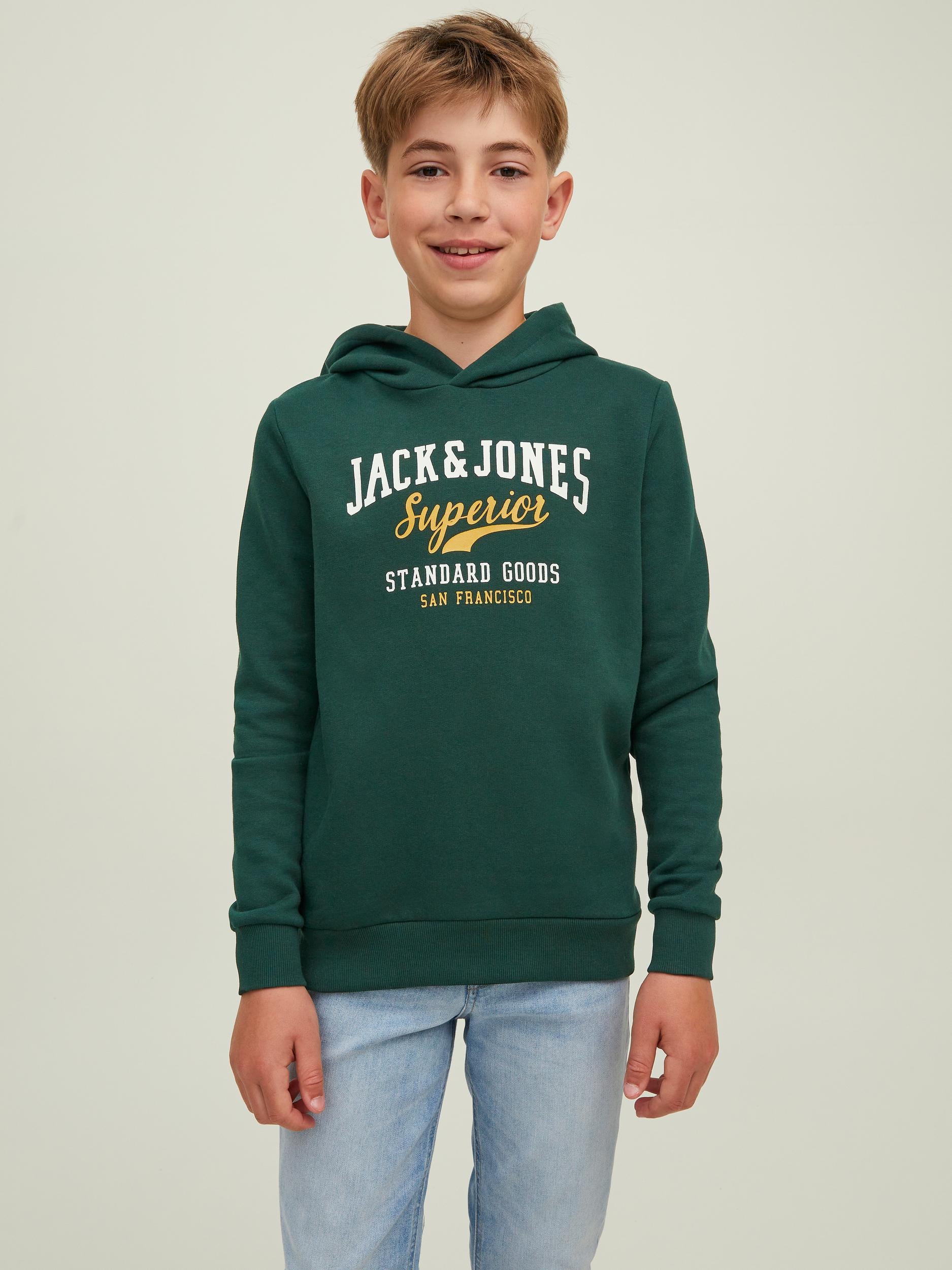 Grön, snygg hoodie från Jack & Jones ungdomskläder. Borstad tyg med mjuk touch på insidan.Produkttyp: HoodieHals : HoodieÄrm : Långa ärmarFoder: Bomullstyg inuti huvanPassform: Normal passform