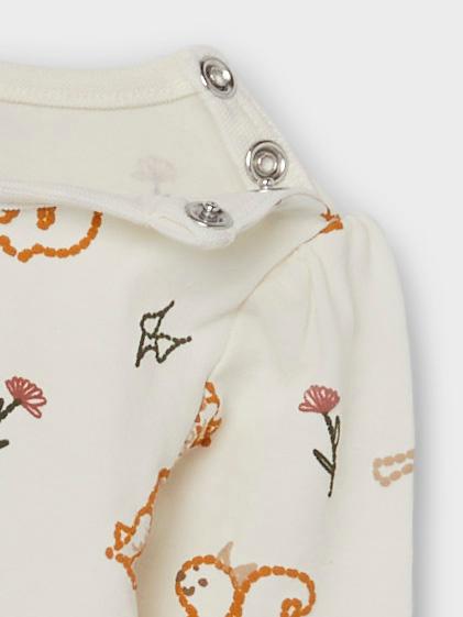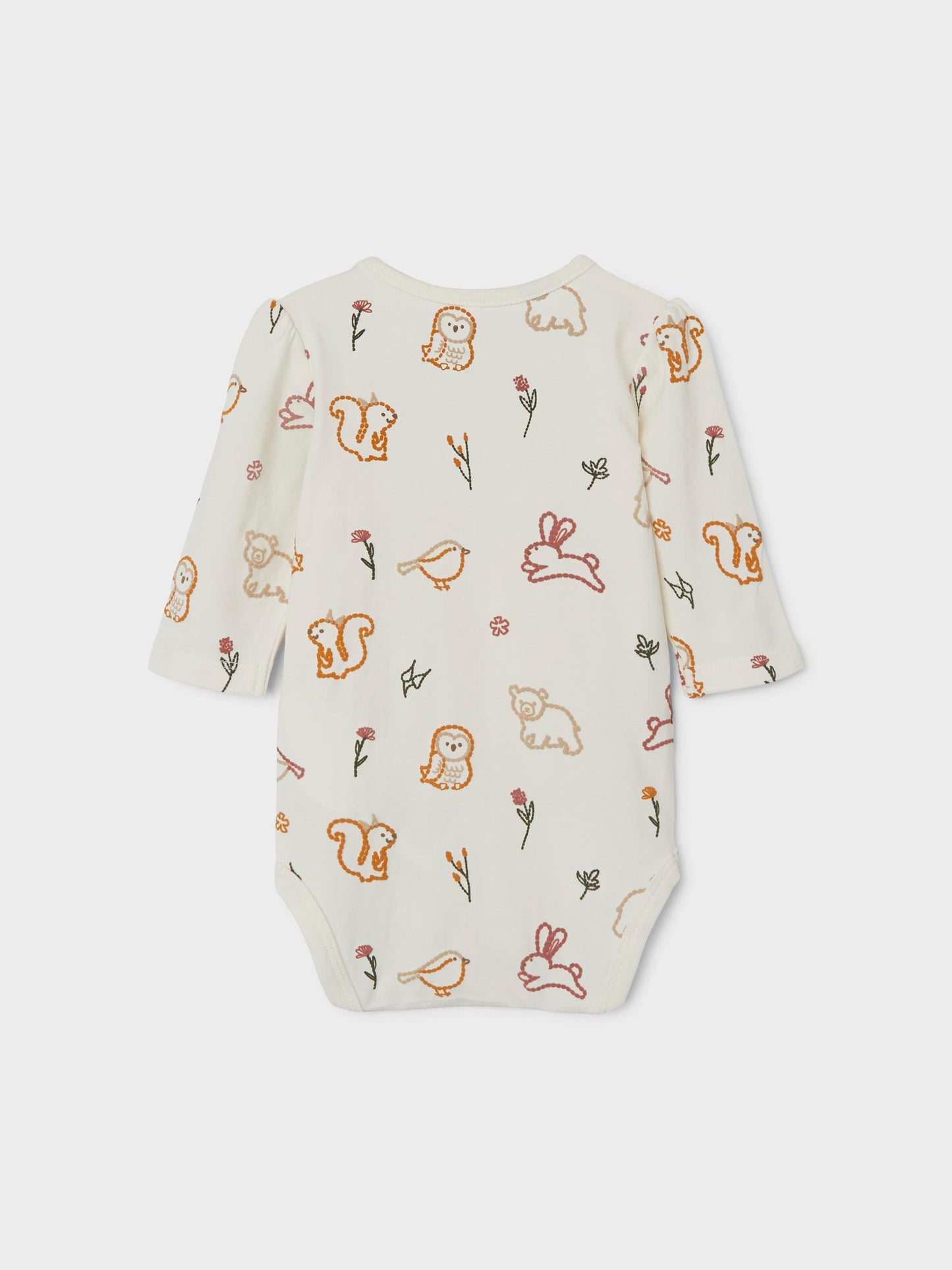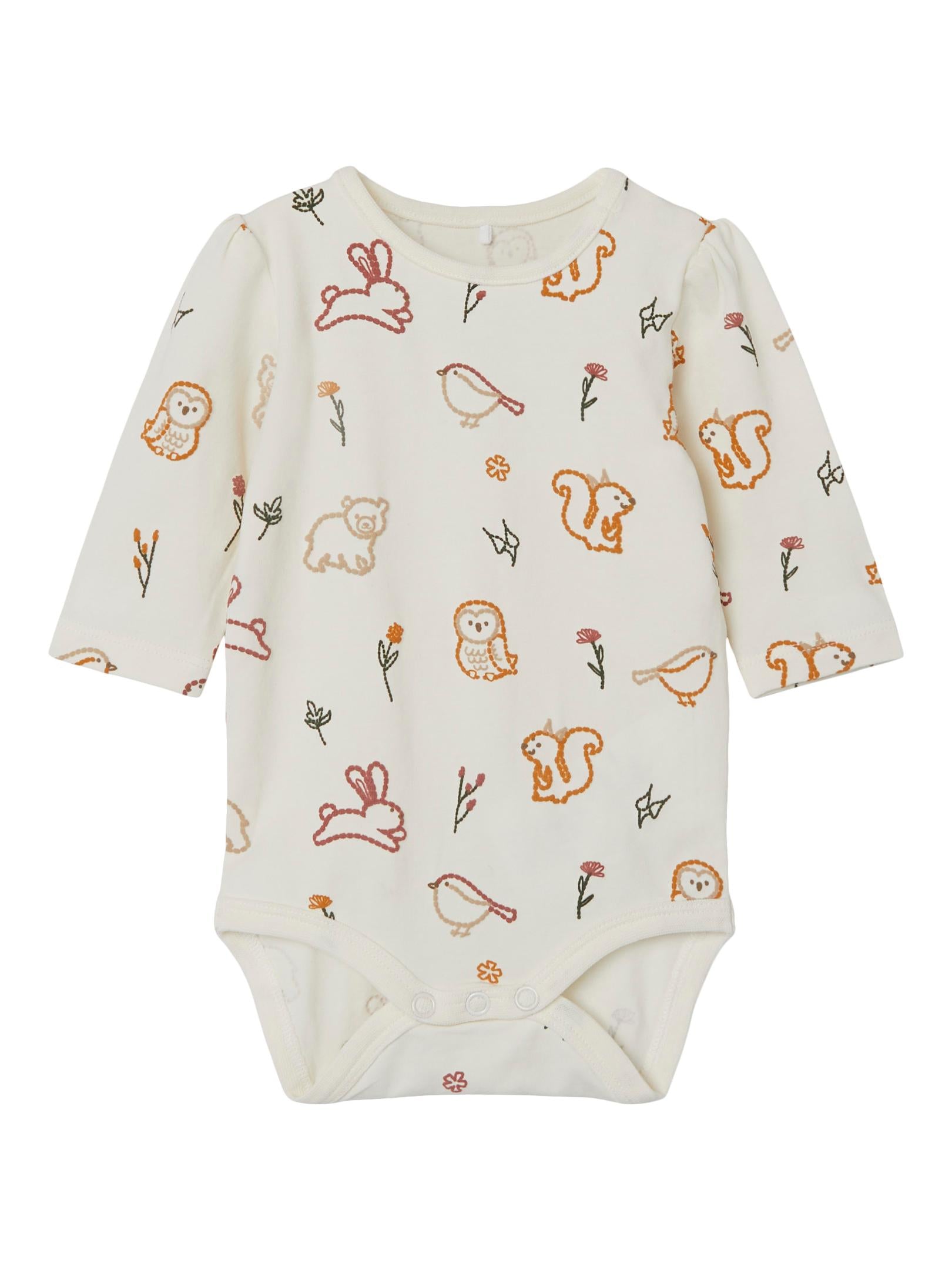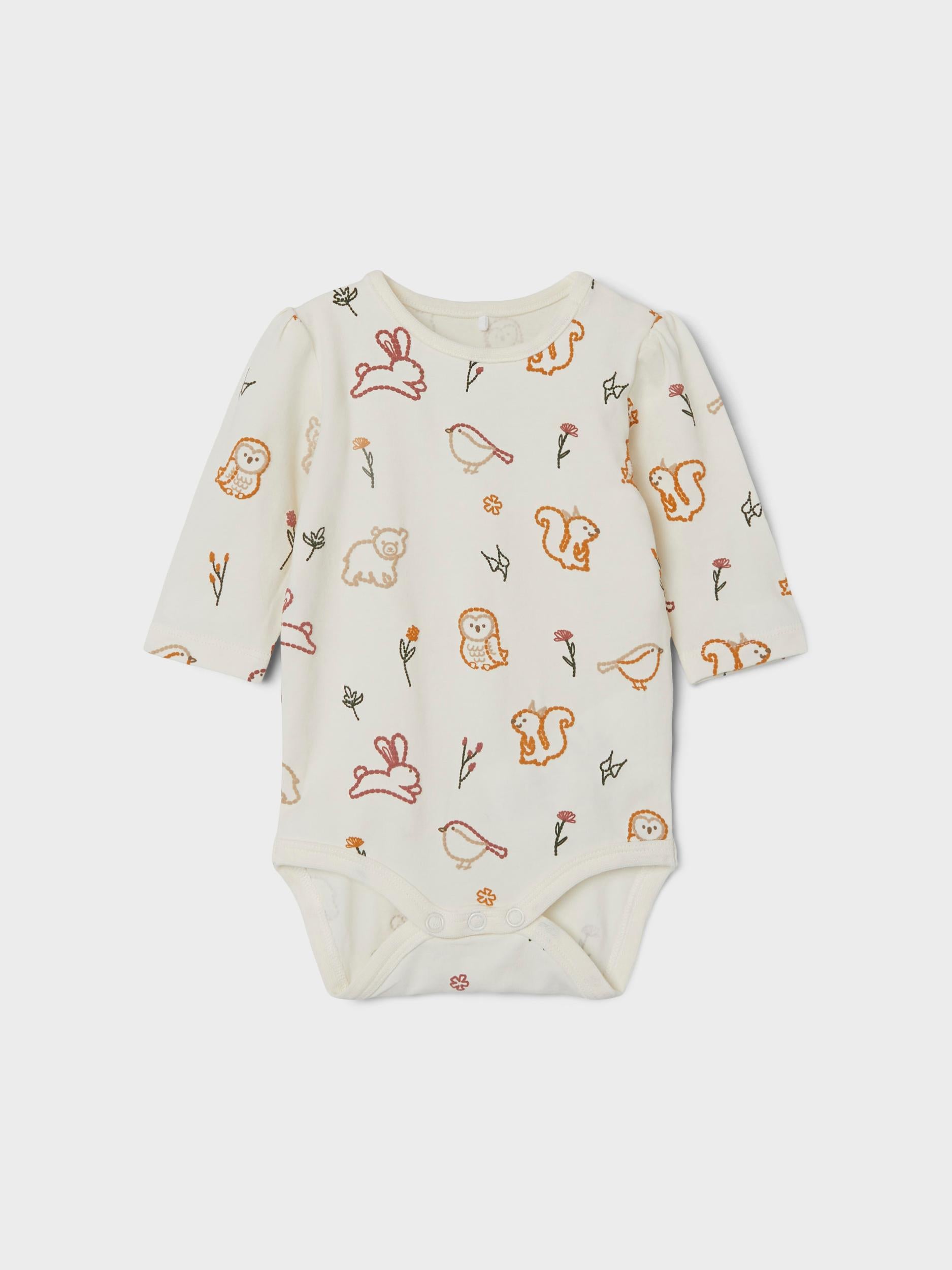 Super söt body för dom minsta. Vit body med små djur och blommor på. Passar alla årstider och tillfällen.