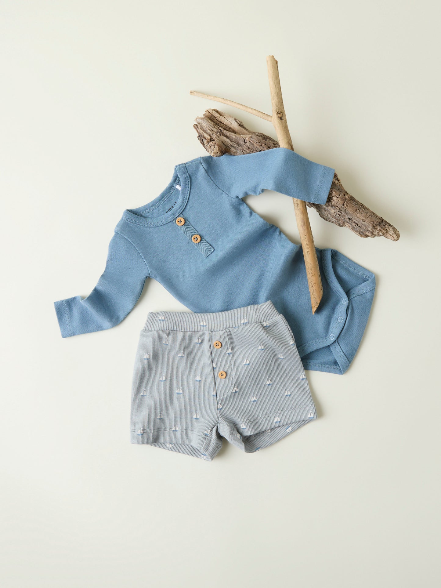 Fräscha upp ditt barns garderob med mjuka och praktiska bodys som är perfekta att använda året runt. Ribbstickad har ett vertikalt, randigt mönster och bra elasticitet för en skön känsla och en tidlös look.