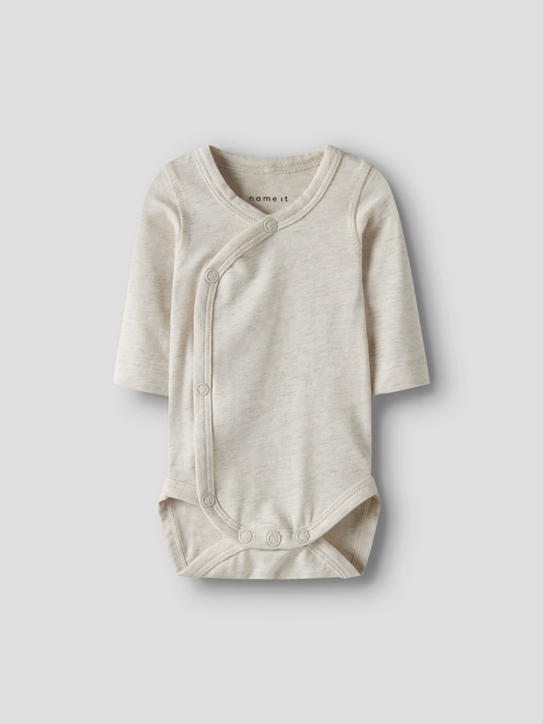 Mjuk och mysig ekologisk bomulls body i omlott modell till väldigt liten bebis. Prematurkläder och denna prematur body är för den riktigt lilla babyn och finns i storlekarna 40-48. Omlottmodellen gör bodyn lätt att klä av och på din bebis pojke eller flicka och knapparna i grenen underlättar vid blöjbyten.