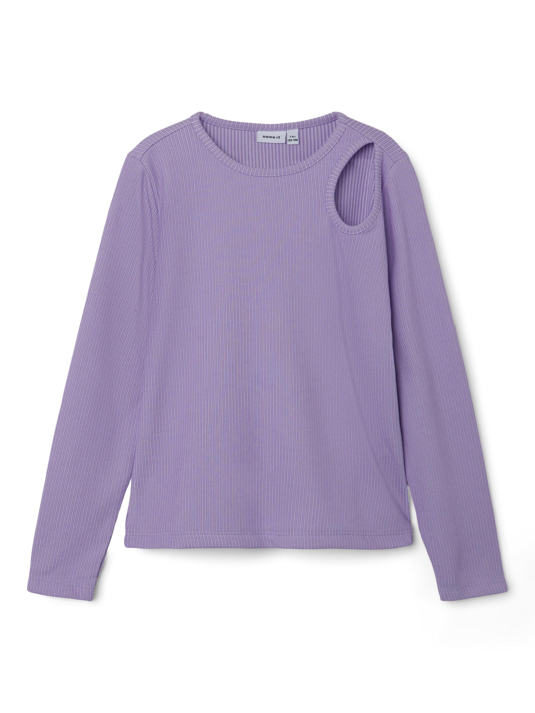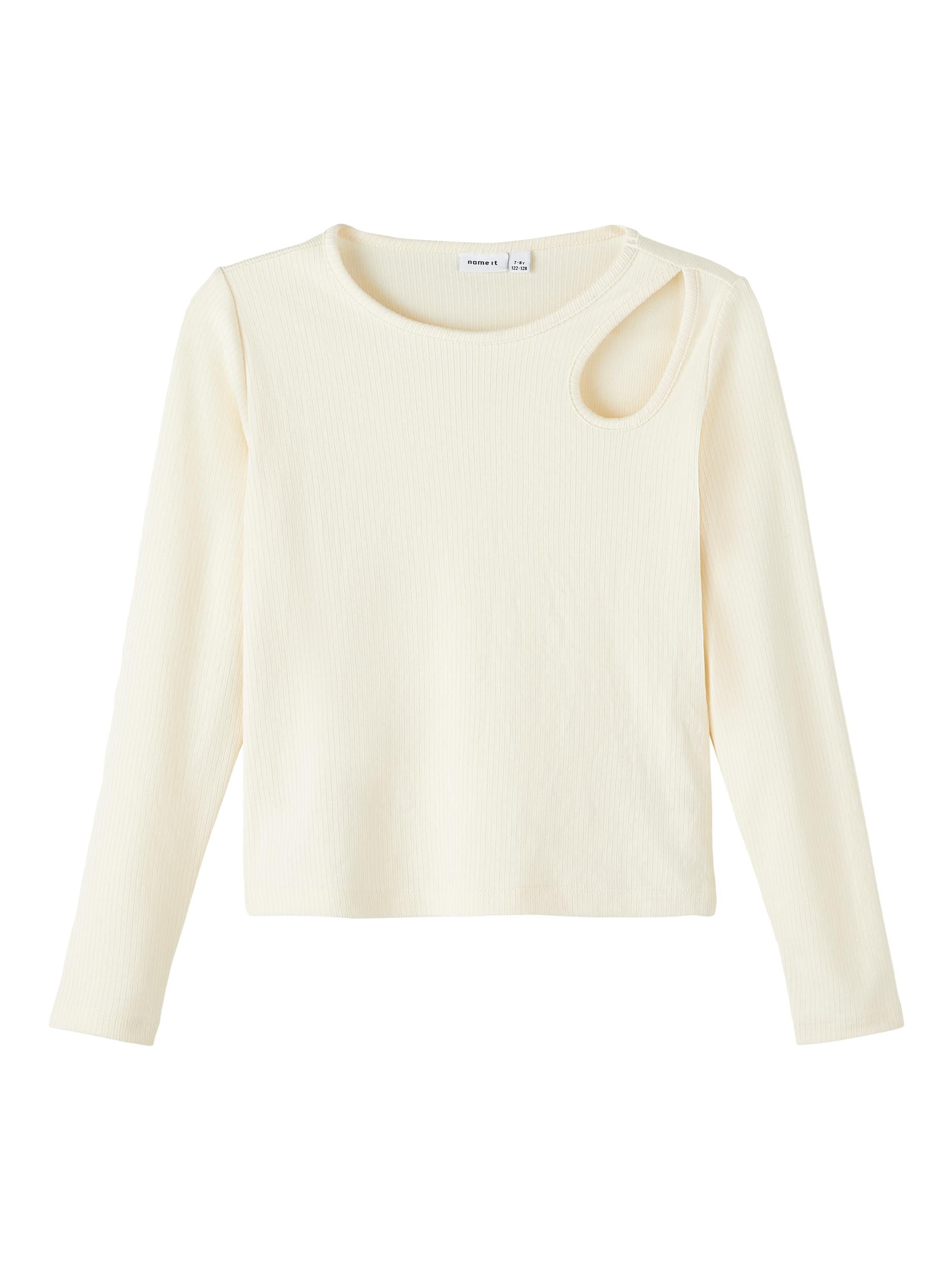 Produkttyp : Blus Tyg: Ribbstickad har ett vertikalt, randigt mönster och god elasticitet för en bekväm känsla och en tidlös look Längd : Kort Extra detaljer: Utklippt detalj Passform: Vanlig passform Hals : O-hals Ärmlängd: Långa ärmar