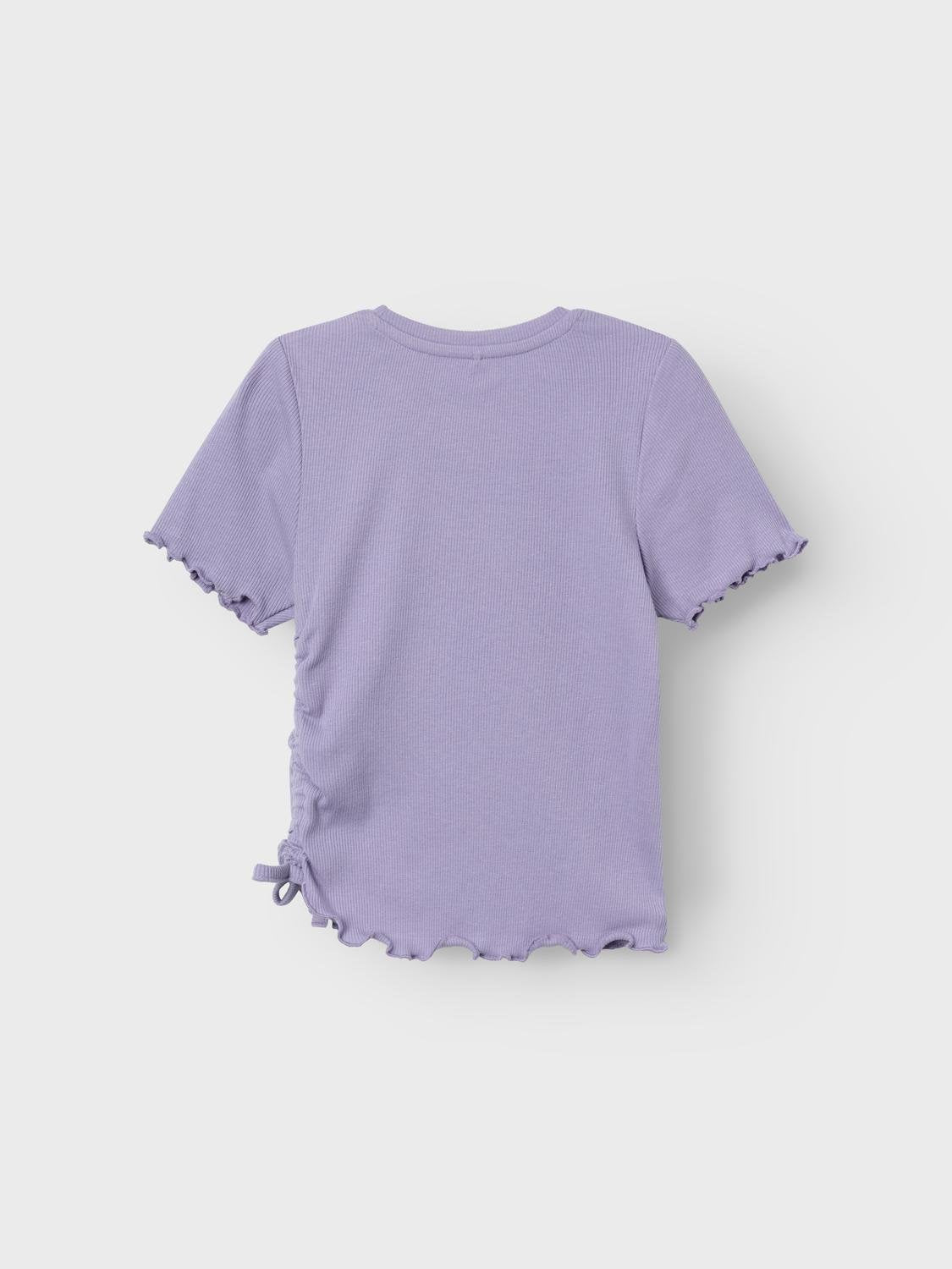 Ribbad kortärmad tröja med fin detalj på ena sidan Sätt ihop den perfekta outfiten för ditt barn med kvalitativa vardagsstilar och skapa en bekväm och trendig look. Ribbstickad har ett vertikalt, randigt mönster och bra elasticitet för en skön känsla och en tidlös look.