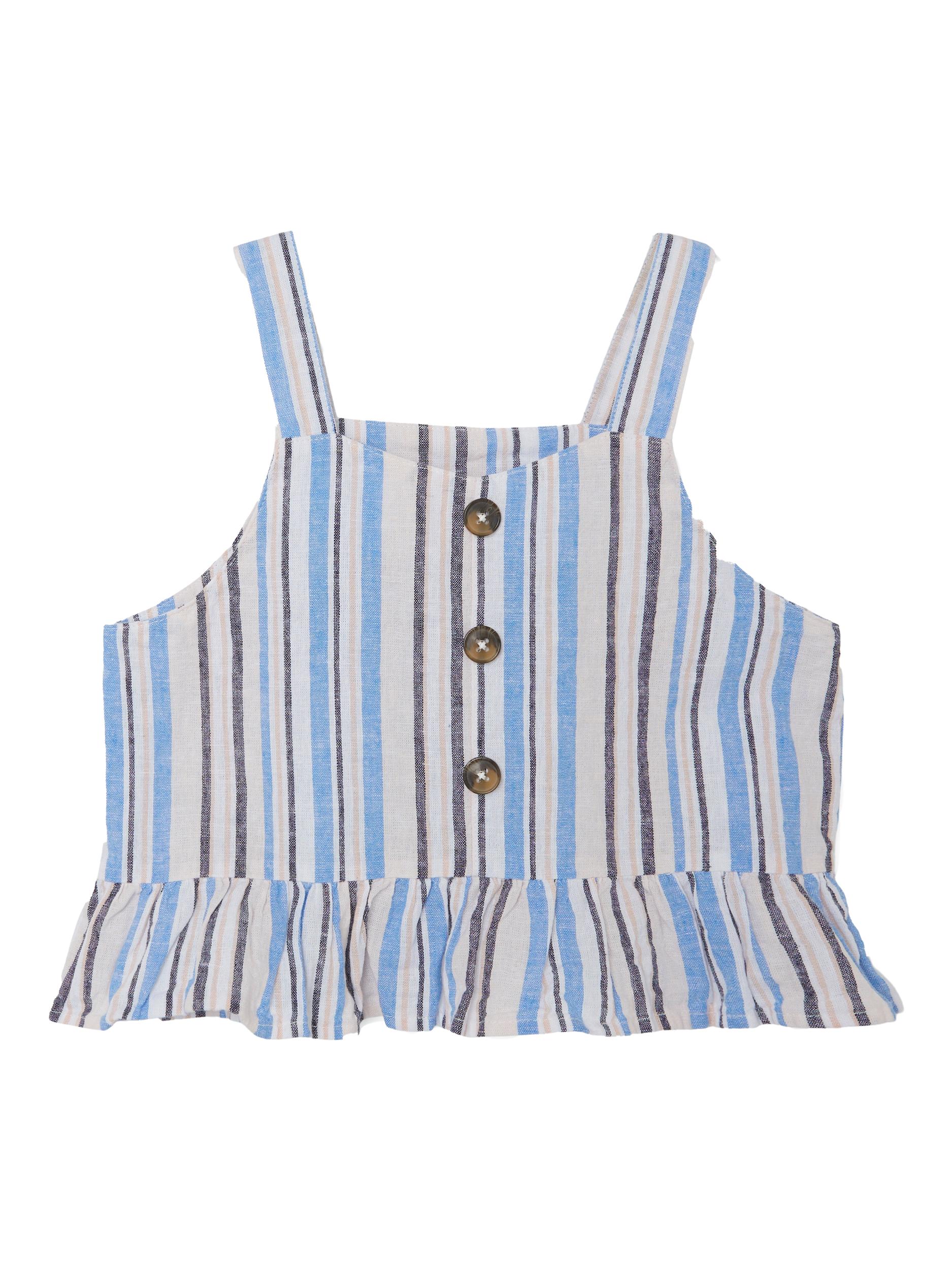 Produkttyp : Linne topp Remmar : Axelremmar Tyg: Vävt tyg har ett distinkt korsmönster och en lätt texturerad yta för ett rent och klassiskt utseende Extra detaljer: - Knapp detalj - Frill hem Tryck: Tryck upprepat över hela tyget Tillfälle / styling: Upplev ljus, liv och natur i ljusa vårstilar som ger kul och färg till ditt barns outfit Passform: Vanlig passform Hals : Fyrkantig hals Ärmlängd: Ärmlös