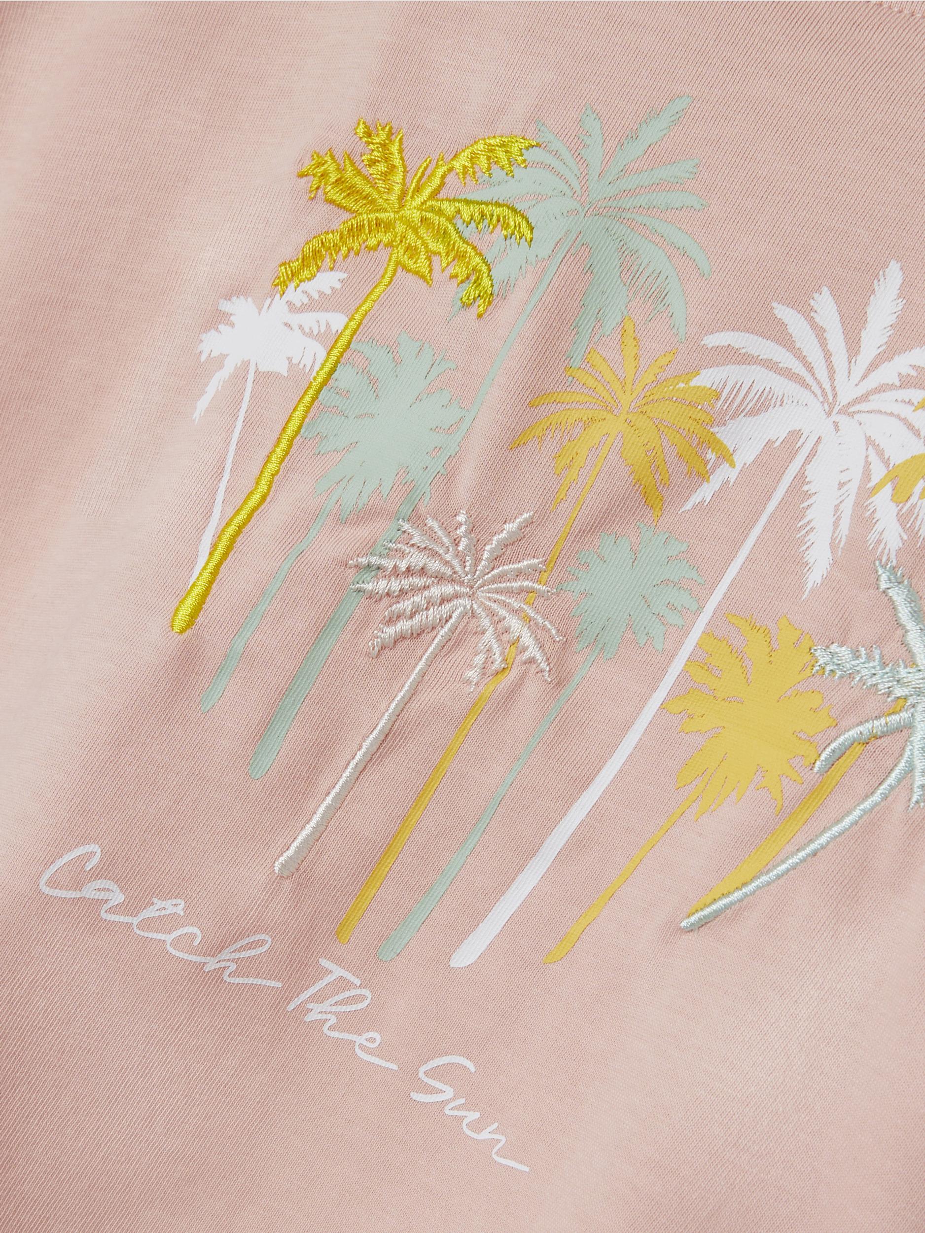 Produkttyp: Topp Hals: Rund hals Ärm: Kort ärm Ärmar: Sänkta axlar Längd/Storlek: Kort Extra detaljer: Broderi Passform: Normal passform