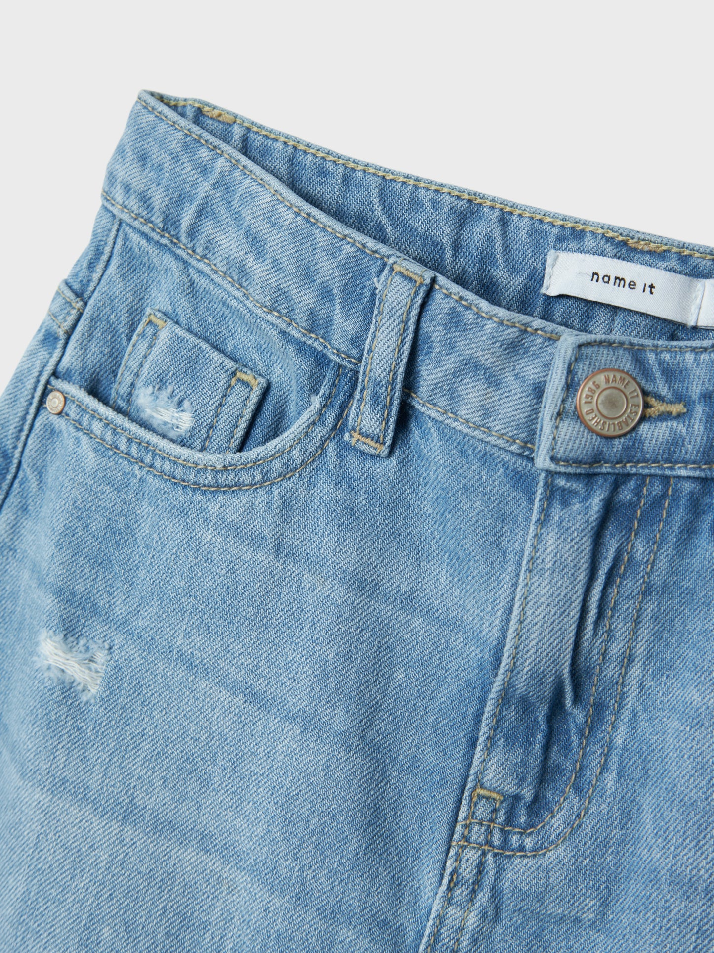 Extra detaljer: Justerbar midja, Nitar