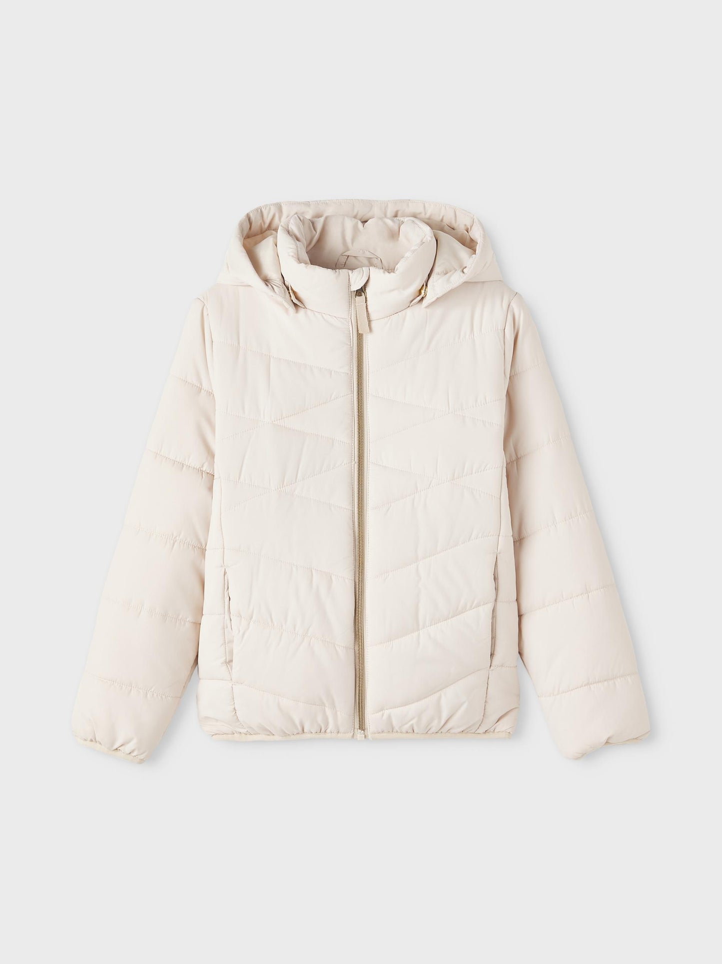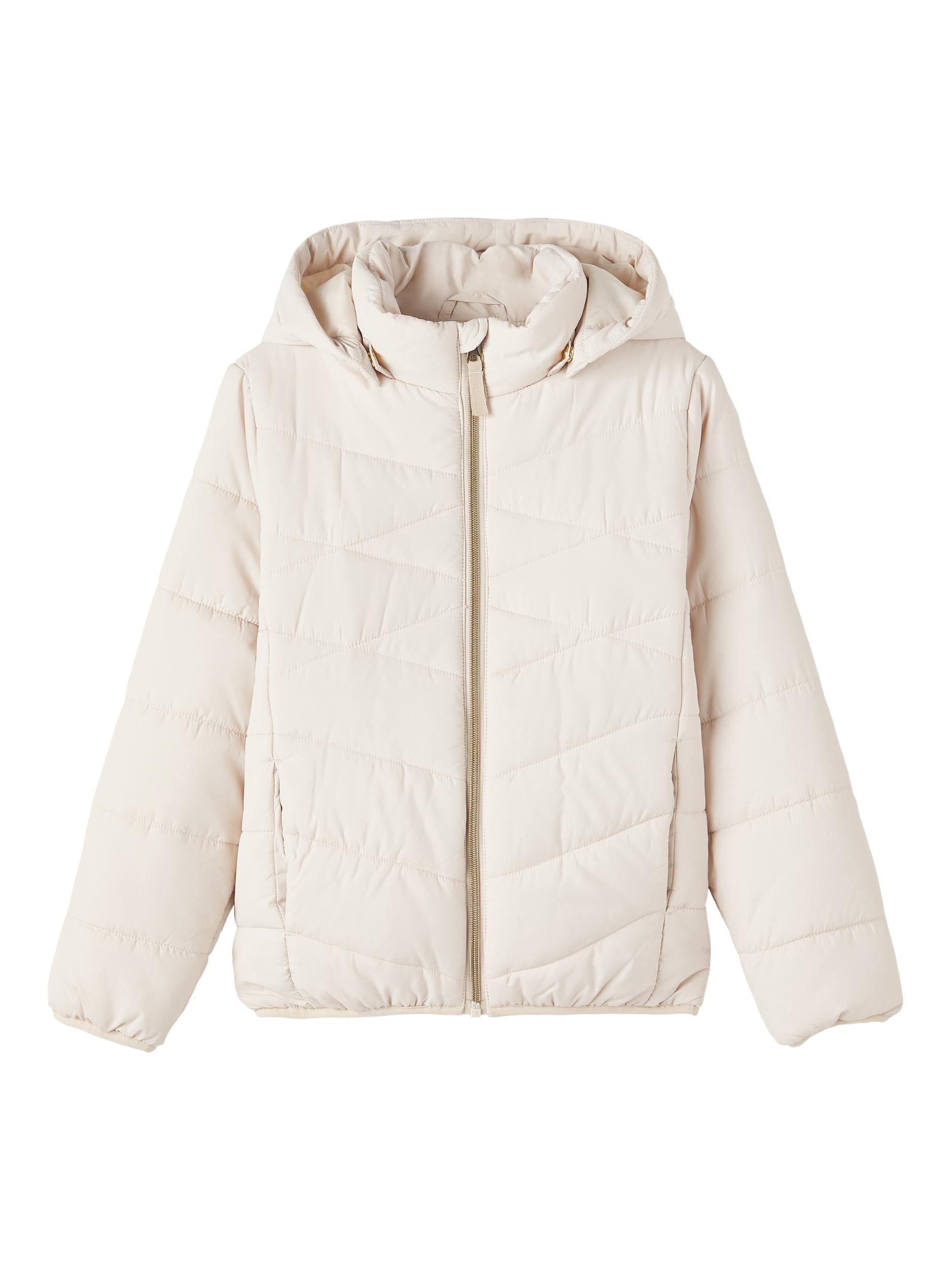 Gör ditt barn redo för alla årstider med en snygg praktisk jacka. Dun jackan håller dig varm men är också snygg och ger outfiten en trendig och ren look. Luvan kan man ta av och jackan har fickor och dragkedja.