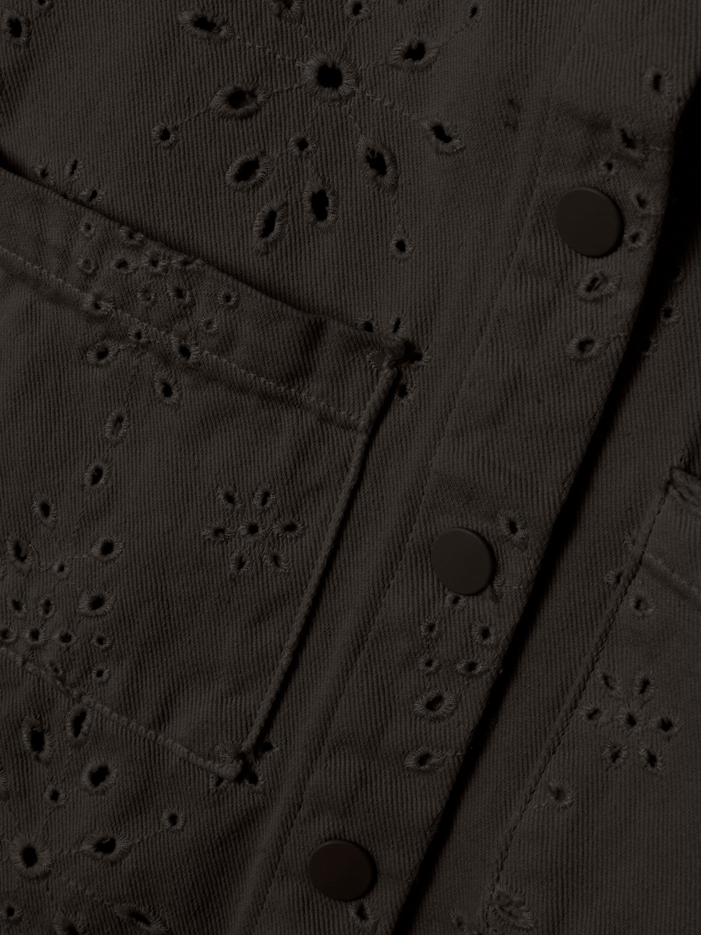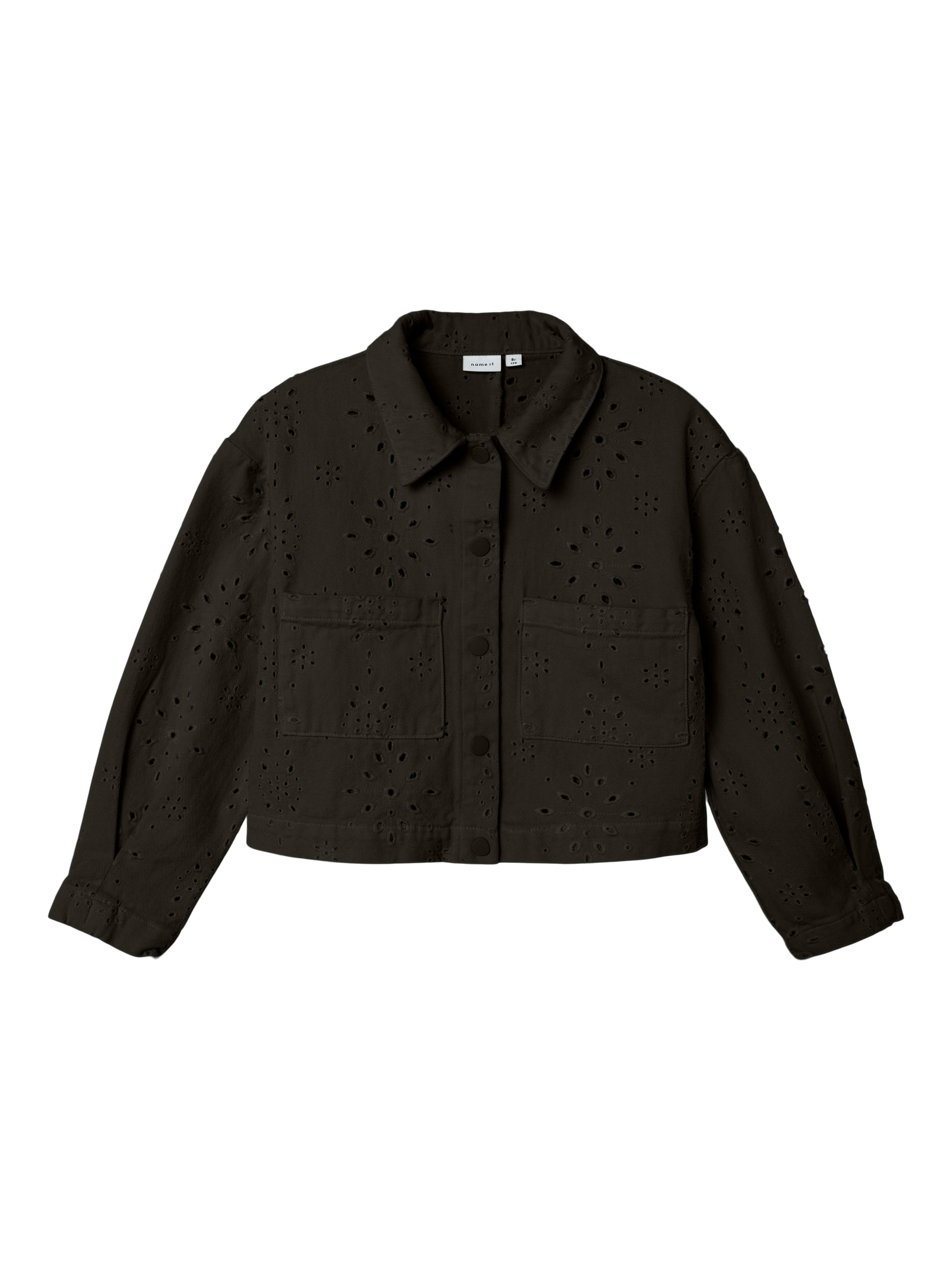 Produkttyp: Jacka Hals: Spridd krage Ärm: Lång ärm Stängning: Tryckknapp Fickor: Bröstfickor Extra detaljer: Broderi Tvätt/finish: Subtila skavsår