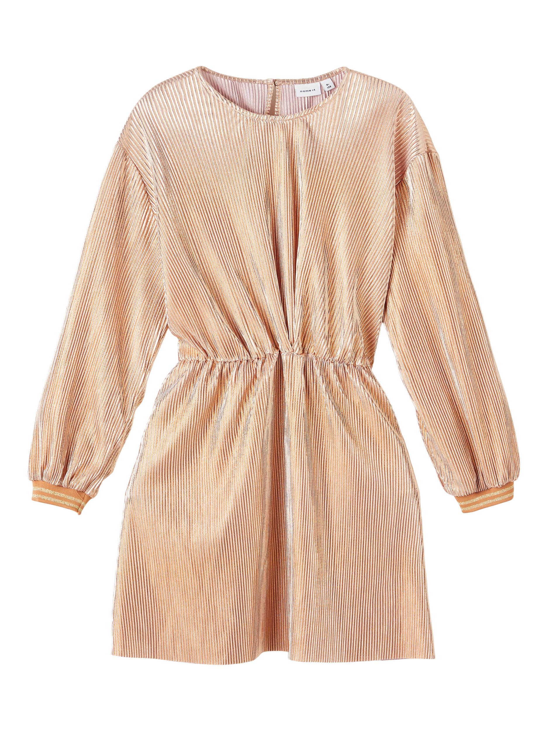 Plisserad klänning i vackert rosétyg med fin lyster.