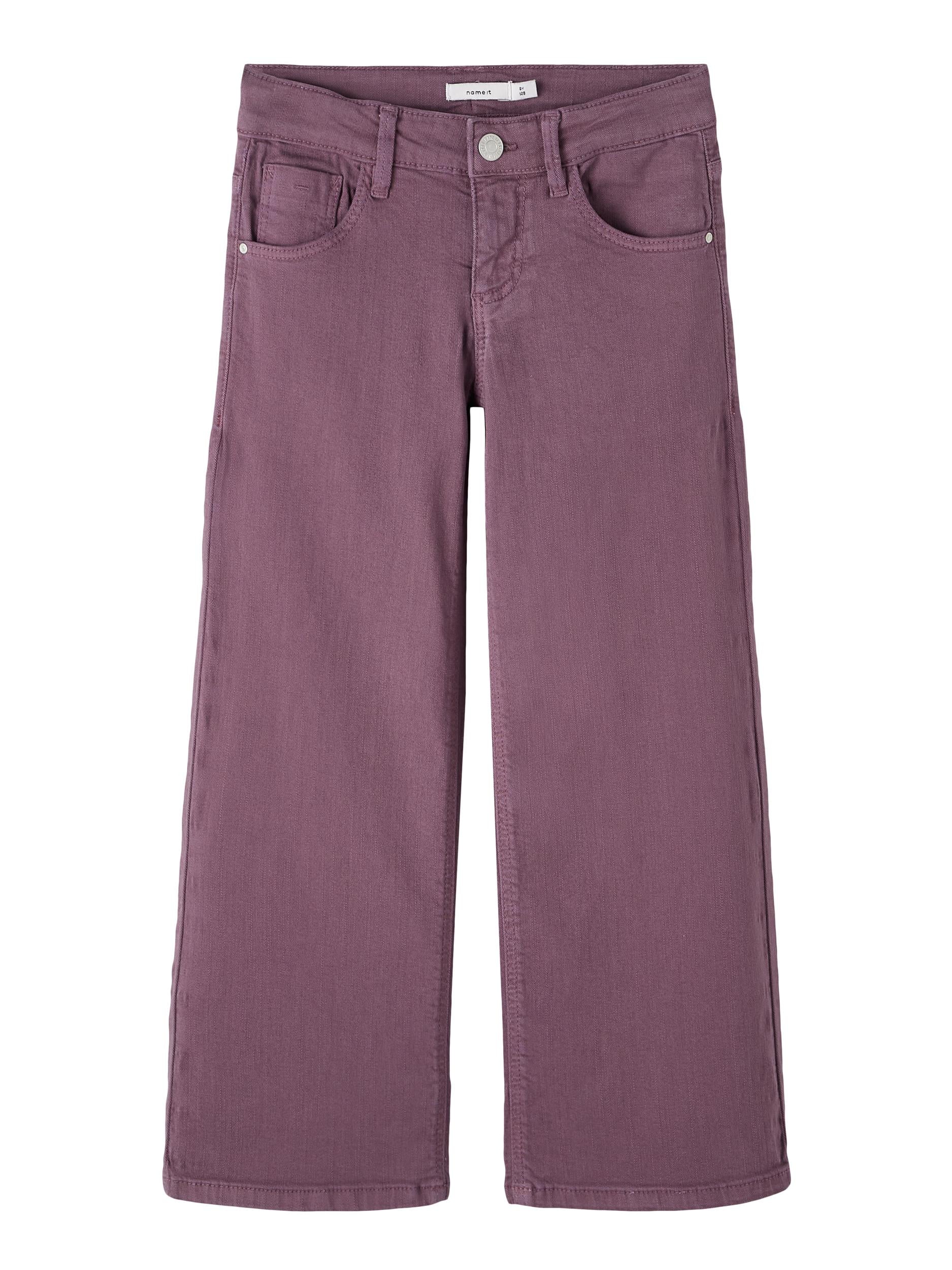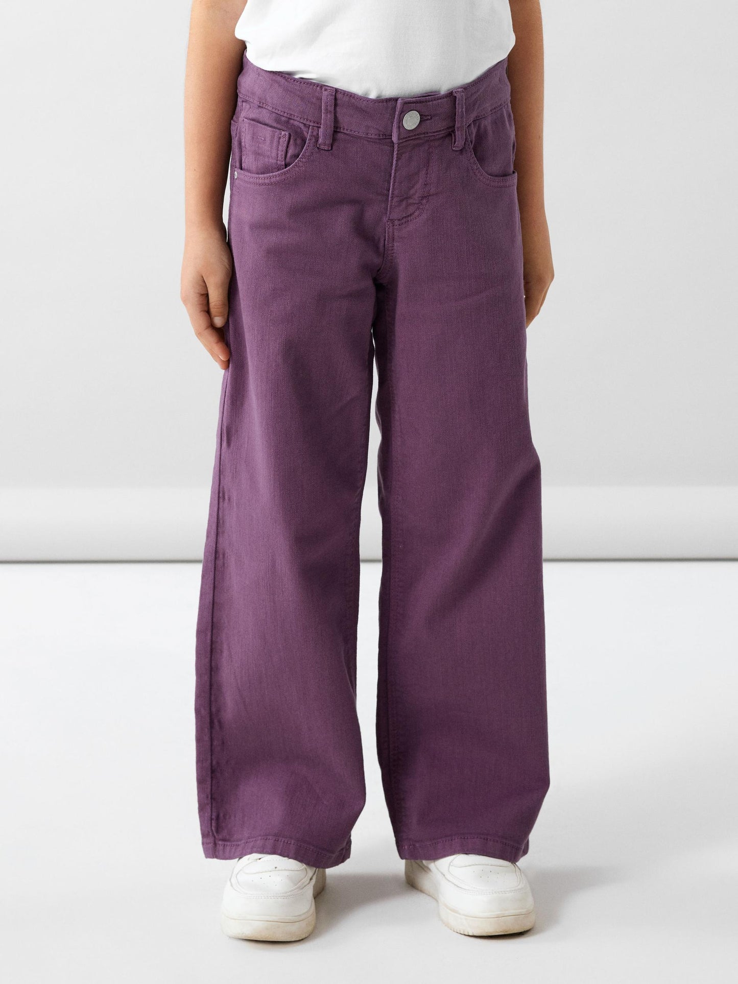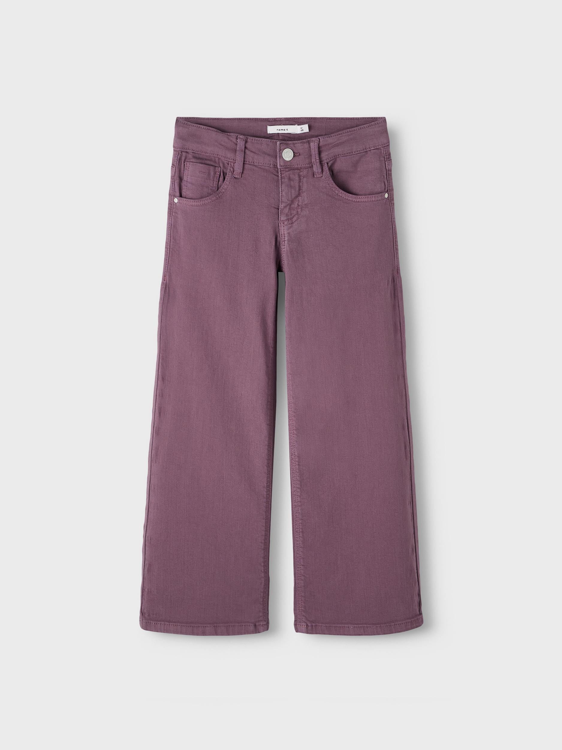 Produkttyp : Byxor med bred passform Tyg: Twill är ett slitstarkt vävt tyg som kännetecknas av sin diagonala design för ett klassiskt utseende Midja : Regular midja Stängning: Krokknapp och blixtlås Extra detaljer: -Nitar - Justerbar midja Fickor: 5-ficka stil med ett trendigt utseende Passform: Regular passform
