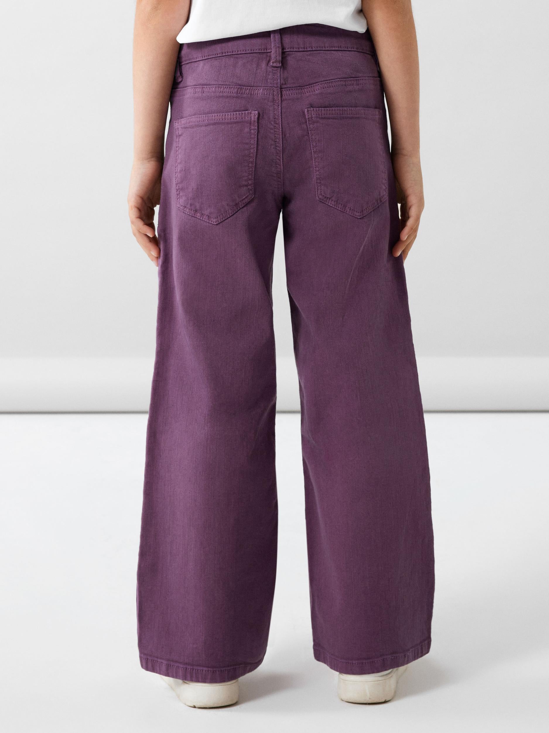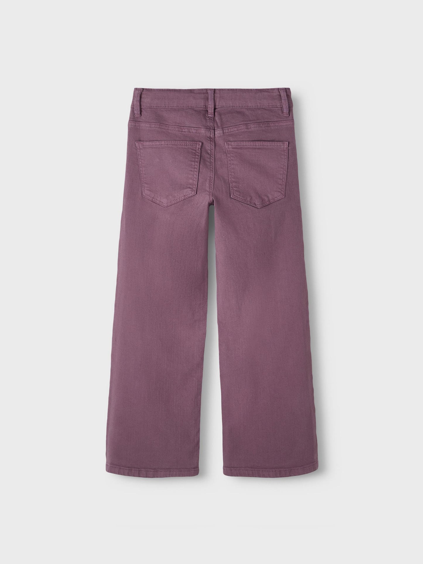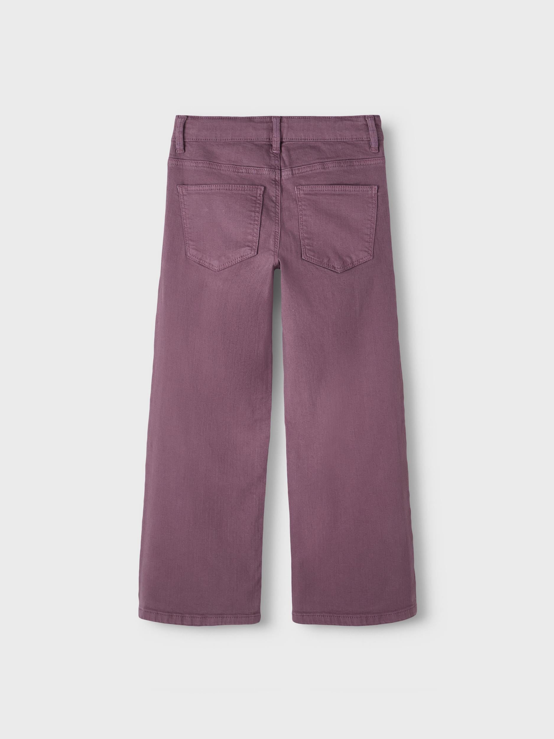 Produkttyp : Byxor med bred passform Tyg: Twill är ett slitstarkt vävt tyg som kännetecknas av sin diagonala design för ett klassiskt utseende Midja : Regular midja Stängning: Krokknapp och blixtlås Extra detaljer: -Nitar - Justerbar midja Fickor: 5-ficka stil med ett trendigt utseende Passform: Regular passform