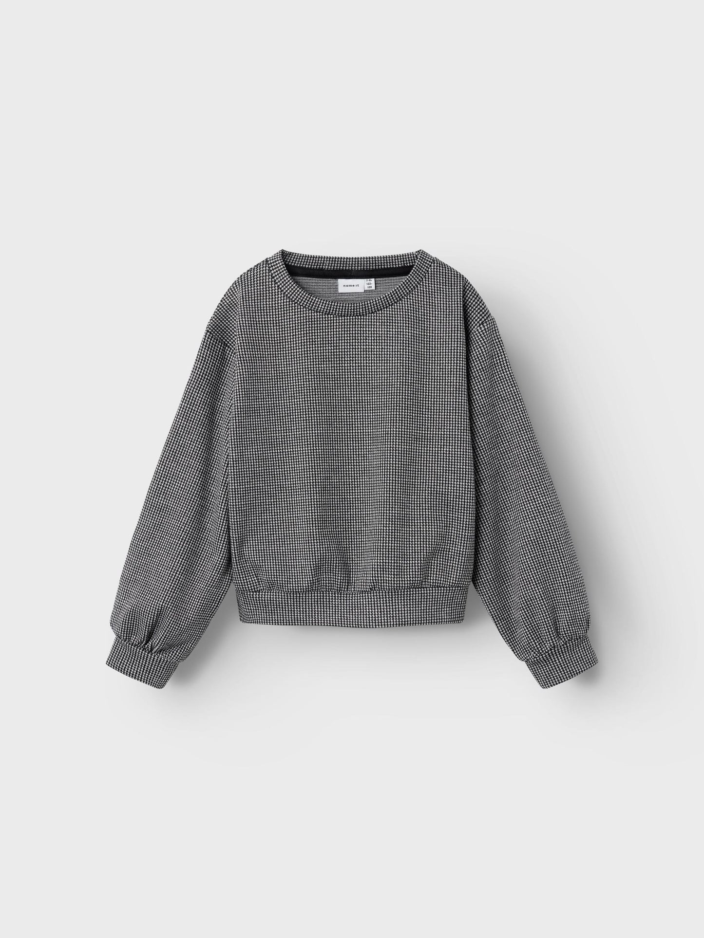 Rutig långärmad tröja som har puff ärmar. Finns matchande byxor till som tillsammans blir ett riktigt snyggt set. Tröjan är heavy och upplevs därför väldigt lyxig. Den rutiga långärmaden är också cropad.