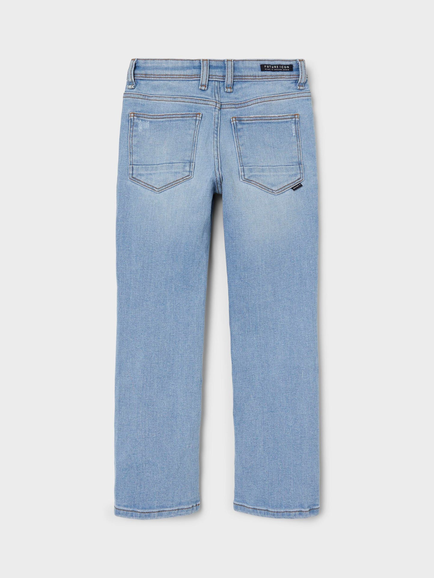 Produkttyp: jeans med rak passform Stängning: Krokknapp och gylf med dragkedja Midja: Vanlig midja Extra detaljer: Justerbar midja, Nitar Tvätt/finish: Skrapad effekt för karaktär och en subtil distressed look Passform: Rak passform Passform: Rak passform