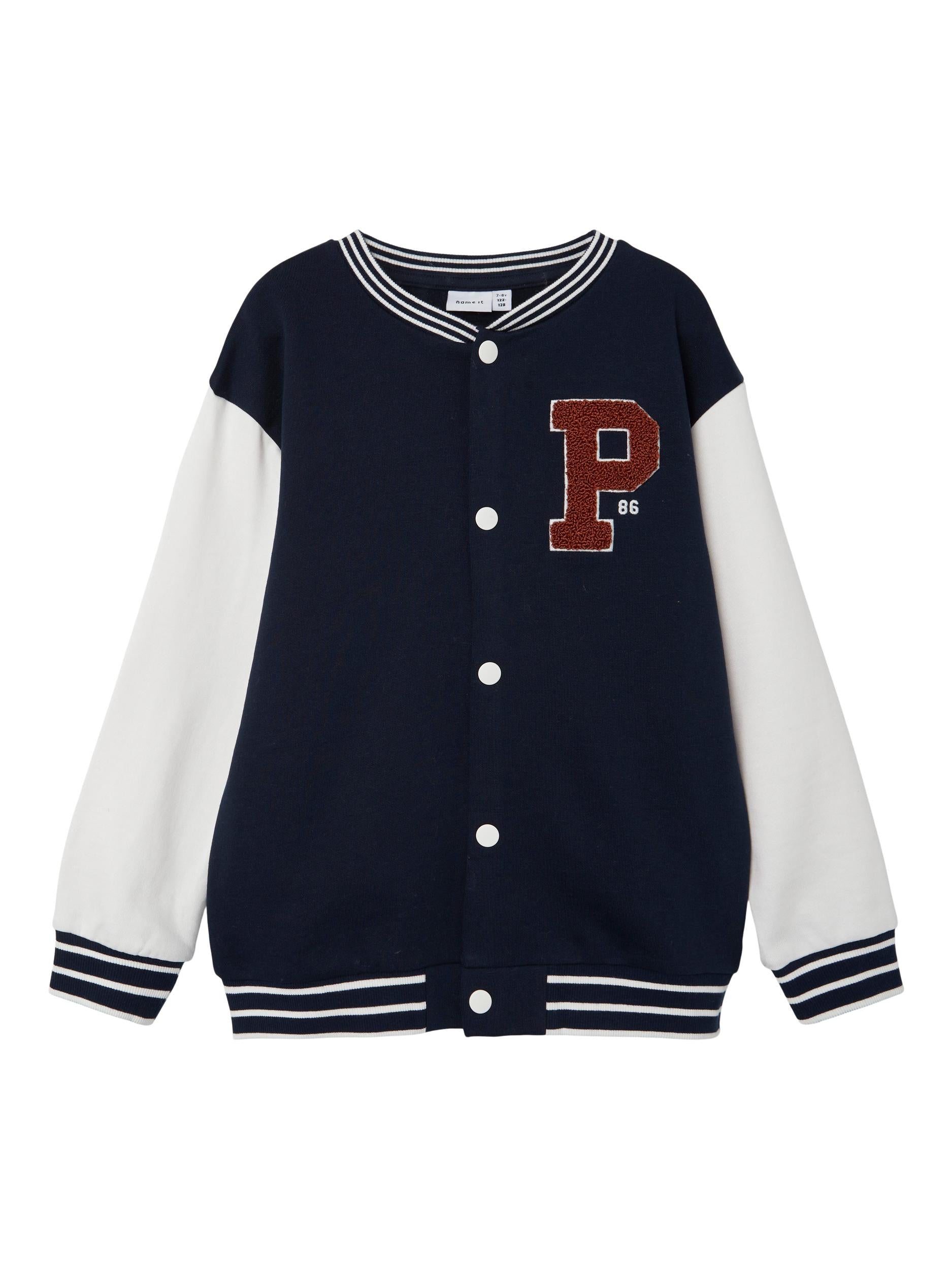 Baseball-jacka med tryck-knappar tillverkad av ekologisk bomull.