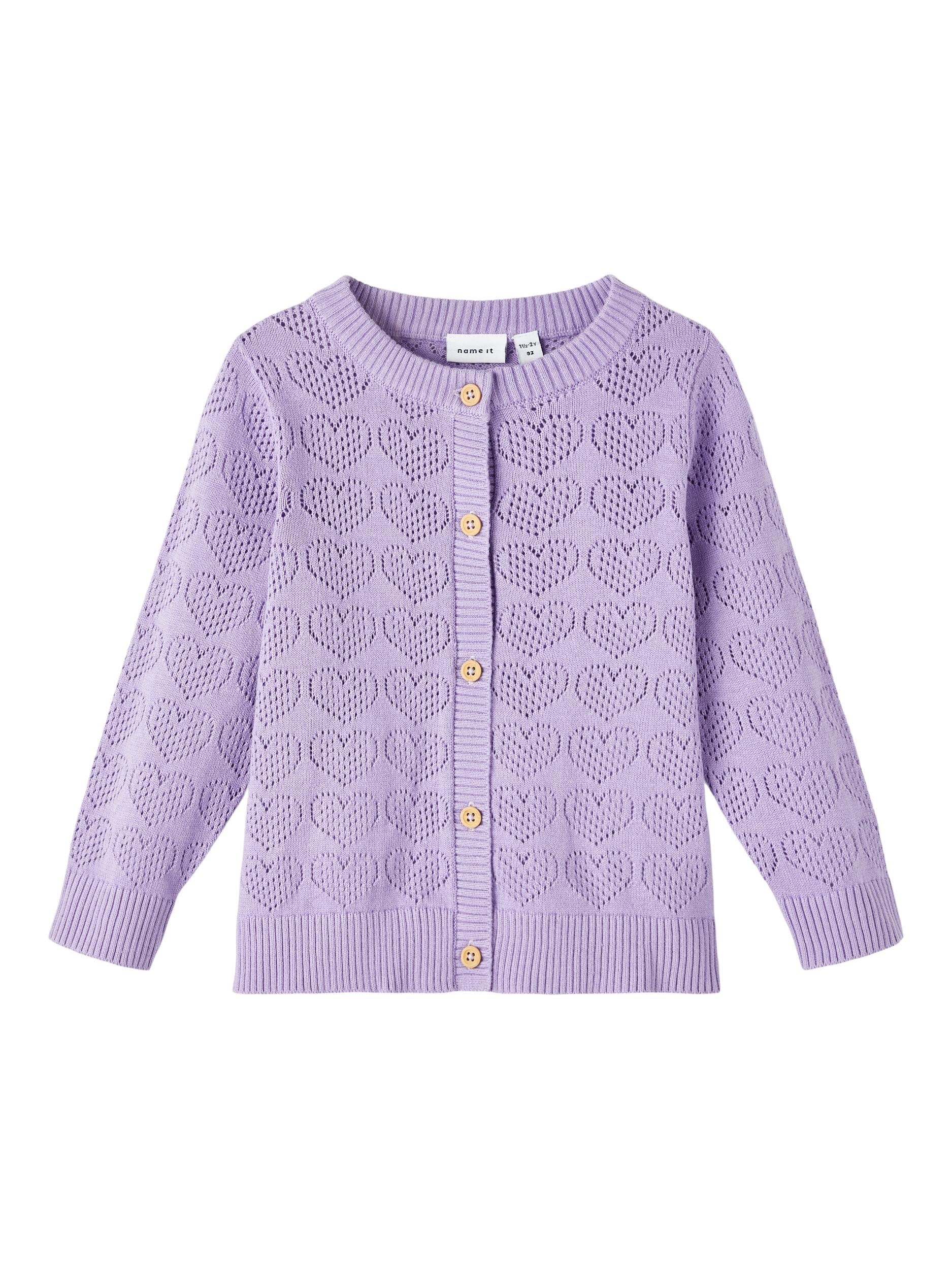 Finstickad kofta i vacker lila färg perfekt att ha över klänningen eller till ett par coola jeans och t-shirt