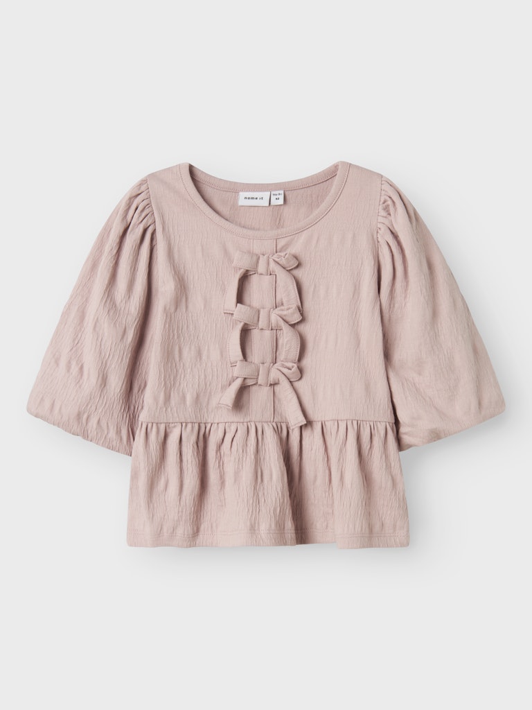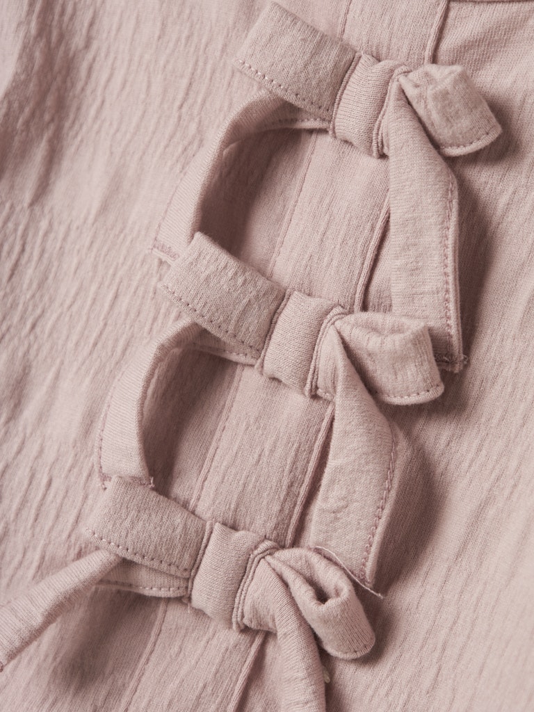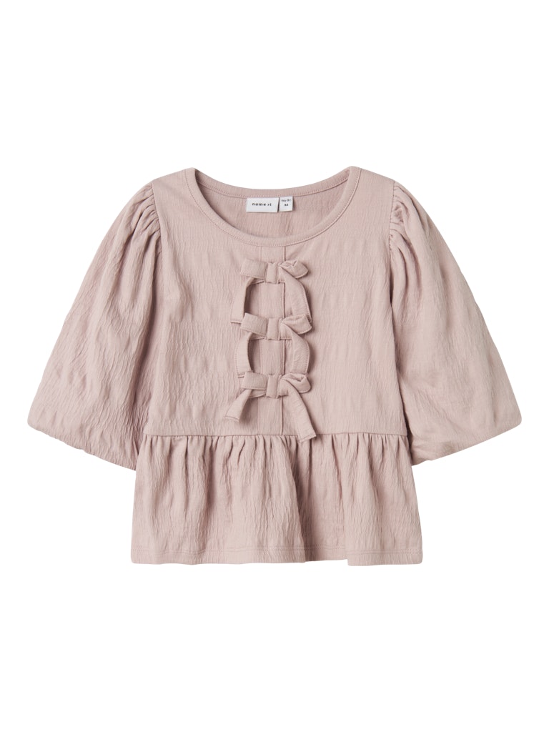 En blus som snabbt blir en favorit i garderoben! Denna rosa topp med söta rosettdetaljer är både bekväm och bedårande – perfekt för små stunder av vardagsglädje eller när det är dags för något lite extra.