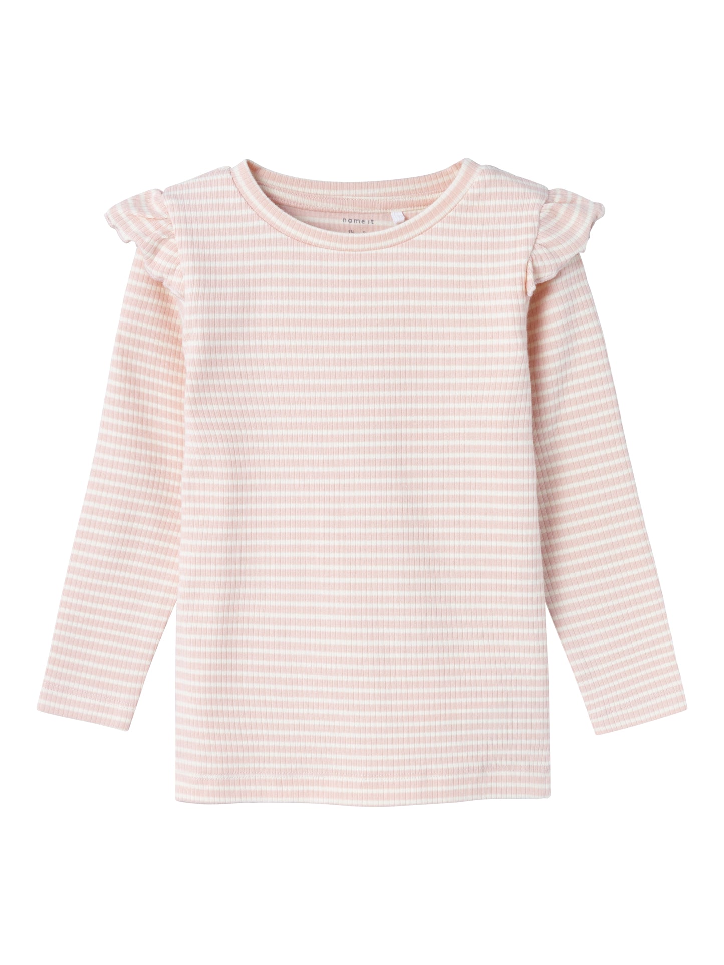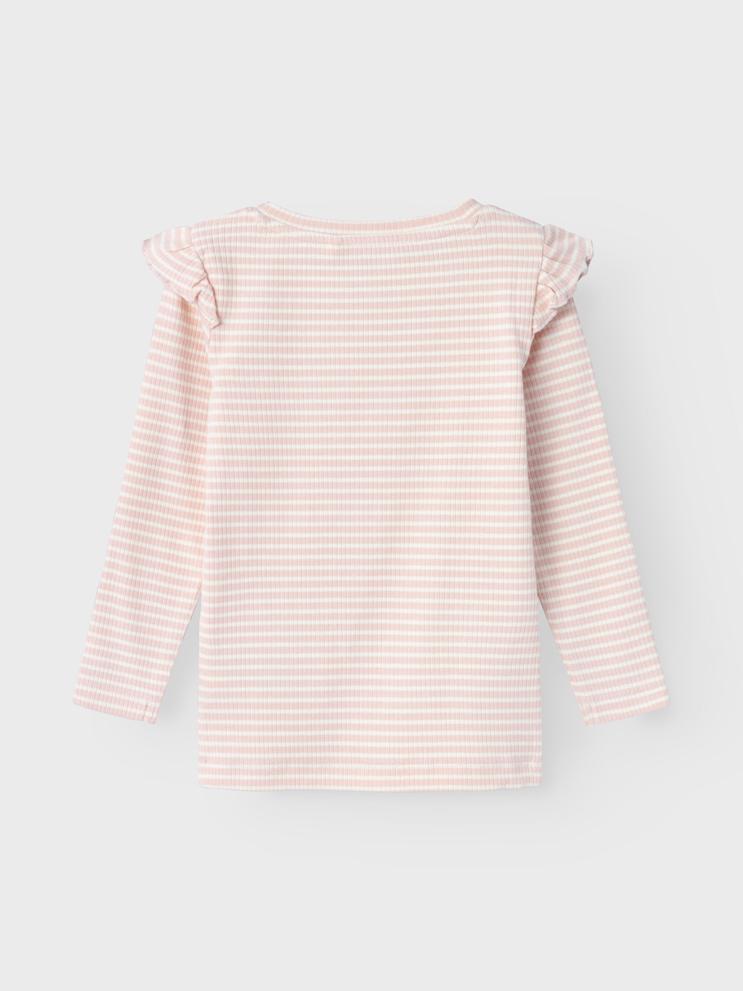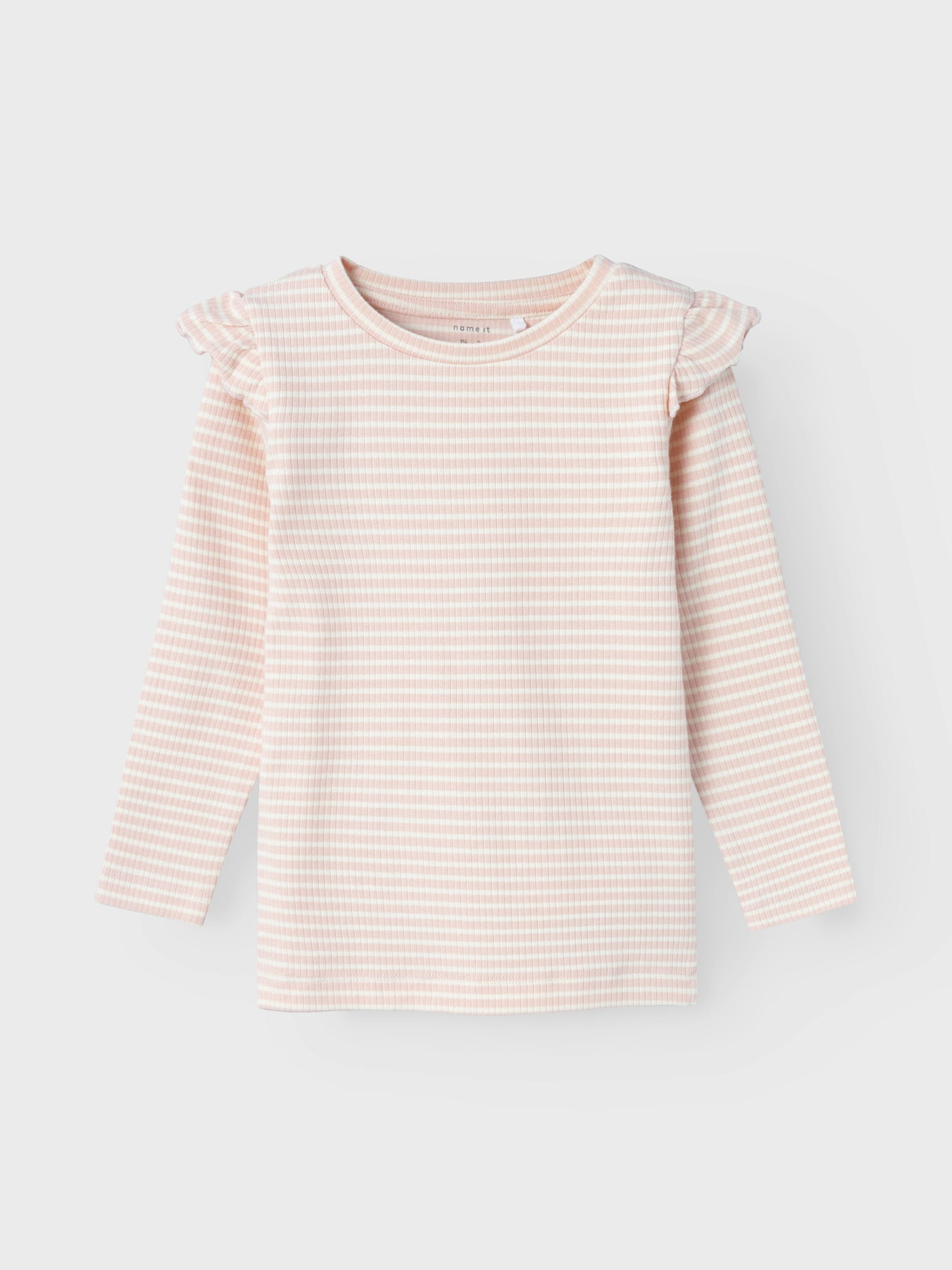 Fin långärmad randig tröja med volang axlar. Tröjan finns i två färger. Passar till alla tillfällen med hjälp av olika typer underdelar och accessoarer. Ta in en bekväm och härlig tröja in i din garderob.
