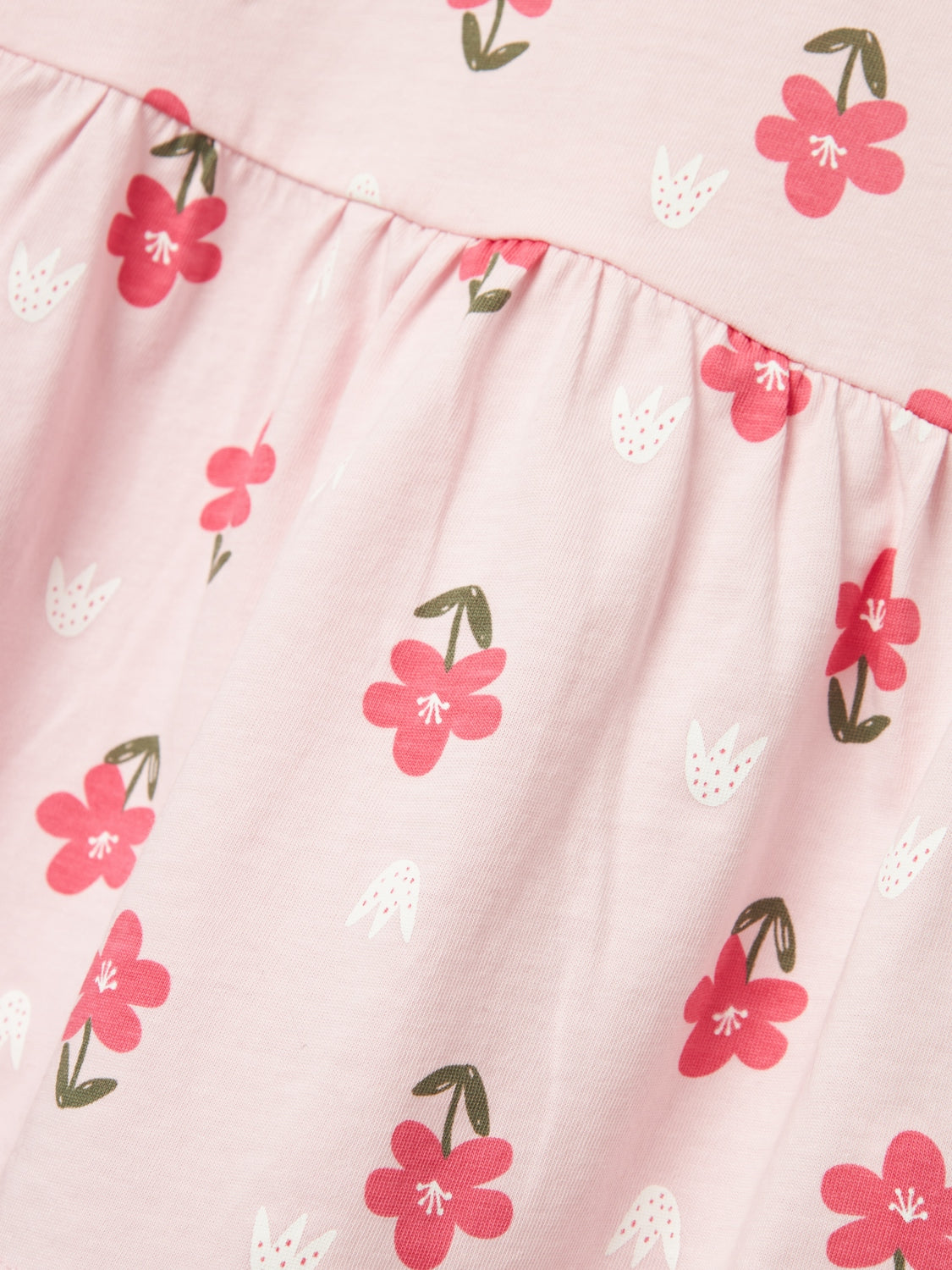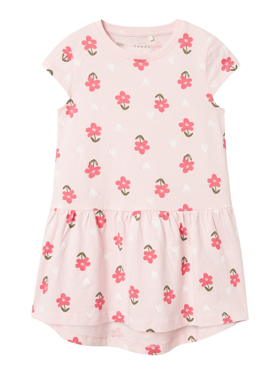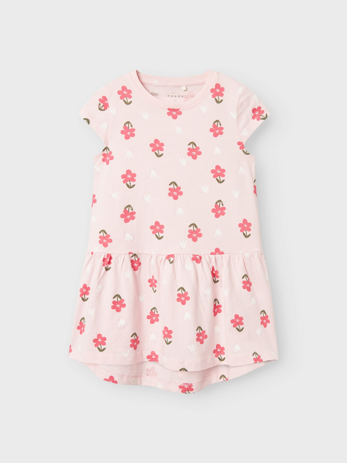 Fräscha upp ditt barns garderob med vackra och coola klänningar perfekta för livets alla tillfällen. Kortärmad t-shirtklänning med gulligt print. Jersey är ett lätt och stretchigt tyg med en mjuk yta och insida för en bekväm känsla och rörelsefrihet.