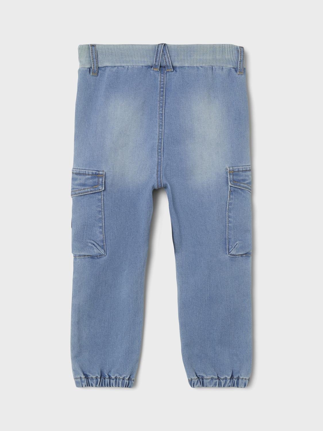 Produkttyp: Baggy fit jeans Fickor: Framficka, Cargofickor Bendetaljer: Elastiska fållar Extra detaljer: Justerbar midja, etikett Passform: Baggy Fit Passform: Detta par jeans har en säckig passform på höften och säckiga ben Fästtyp : Fast snodd Fästlängd: 12 Fästkomp: Bomull
