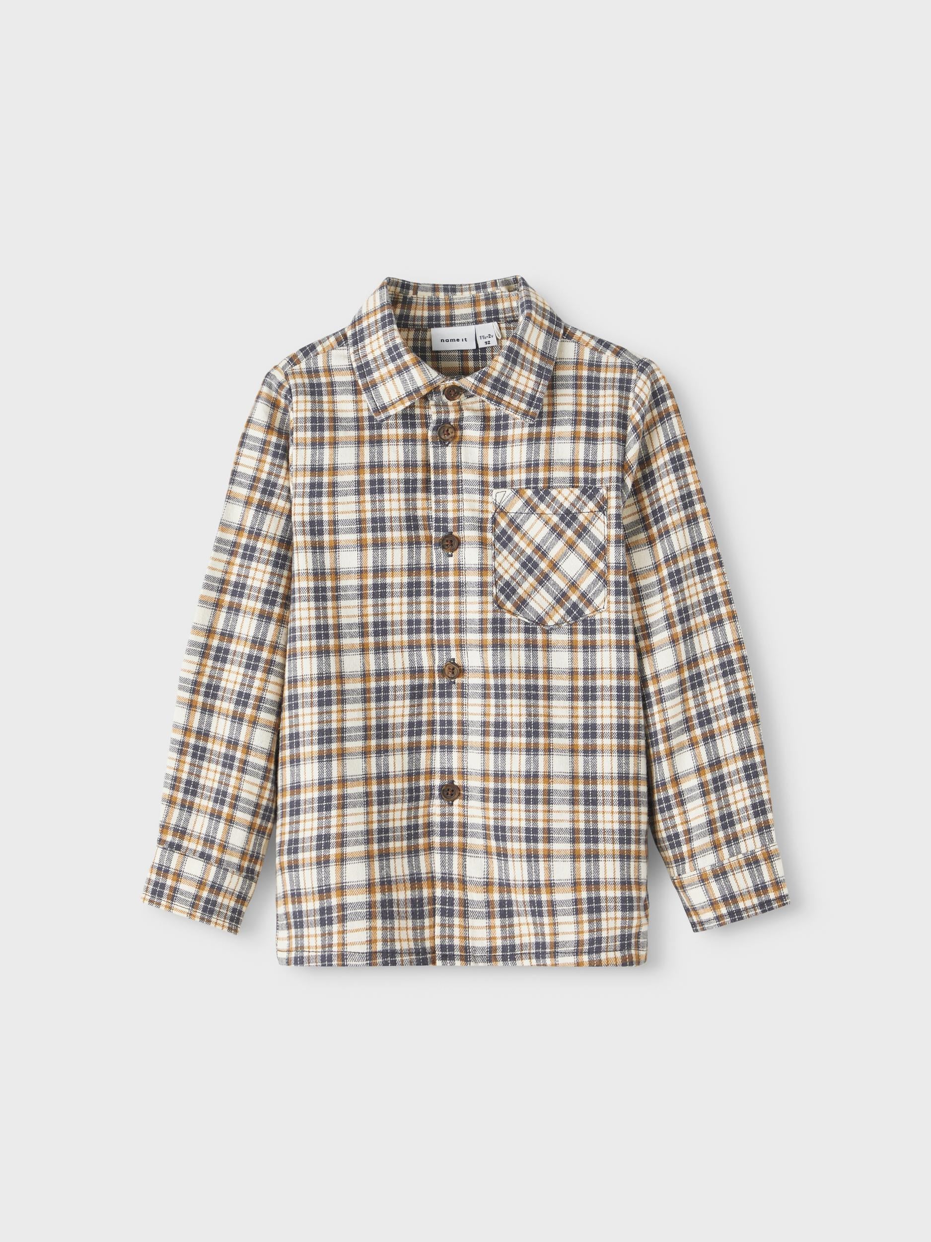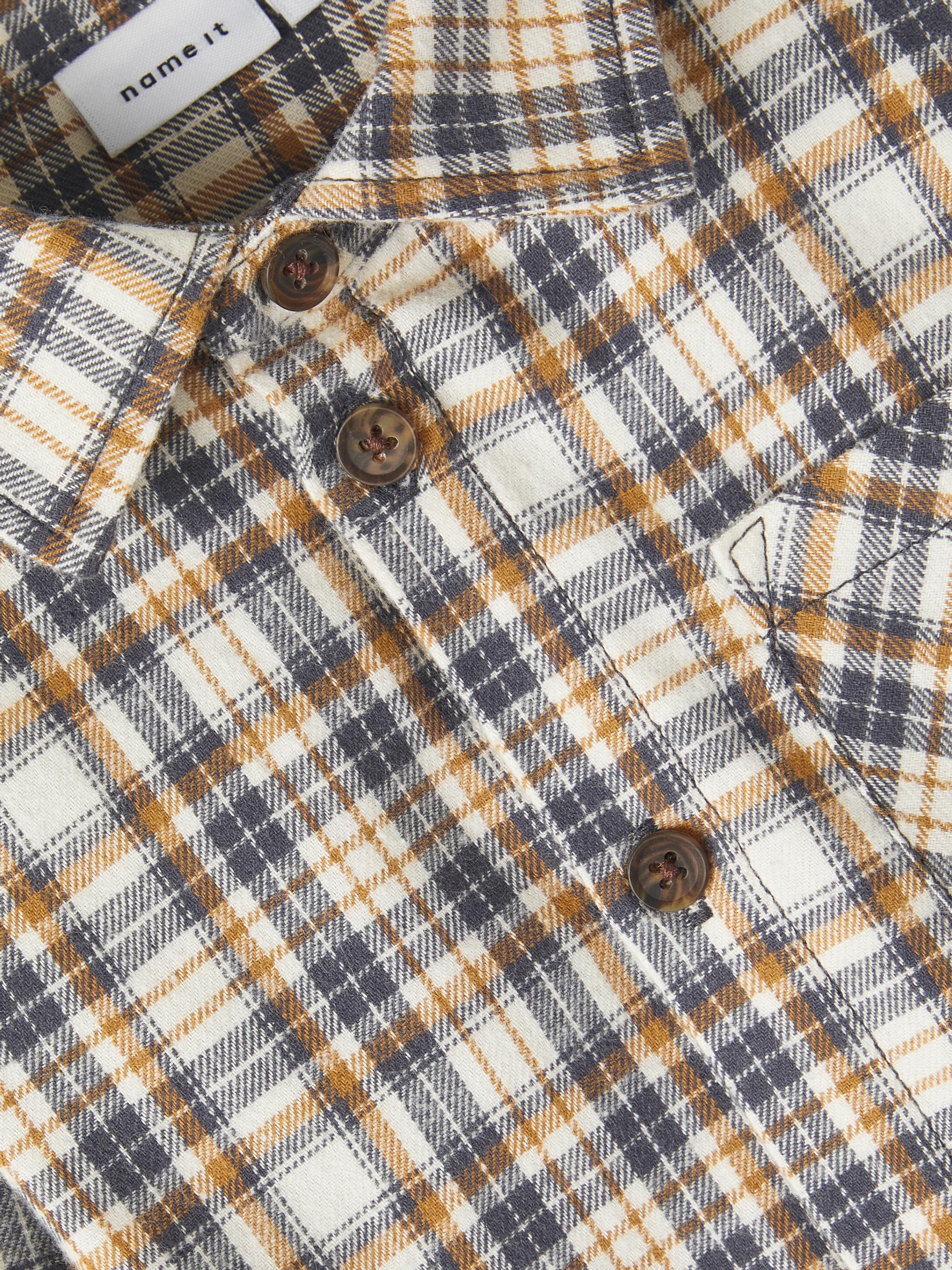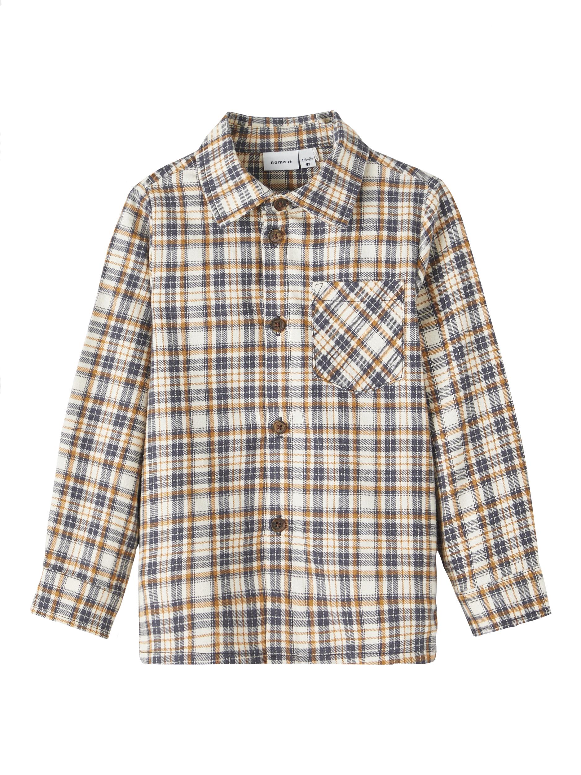 Passa för speciella tillfällen eller vardagskläder med coola skjortor som gör att ditt barn kan röra sig och leka. Vävt tyg har ett distinkt korsmönster och en lätt strukturerad yta för en ren och klassisk look. Material 100 % ekologisk bomull
