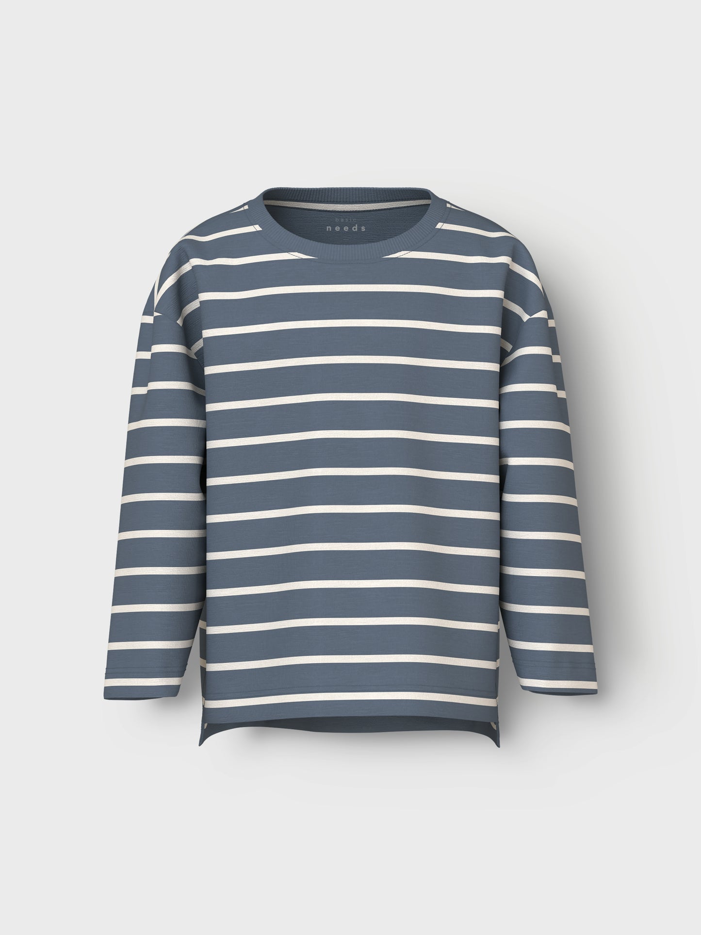 Randig tröja i skön bomull, perfekt för lek och bus på förskolan. Sätt ihop den perfekta outfiten för ditt barn med kvalitativa vardagsstilar och skapa en bekväm och trendig look. Jersey är ett lätt och stretchigt tyg med en mjuk yta och insida för en bekväm känsla och rörelsefrihet.