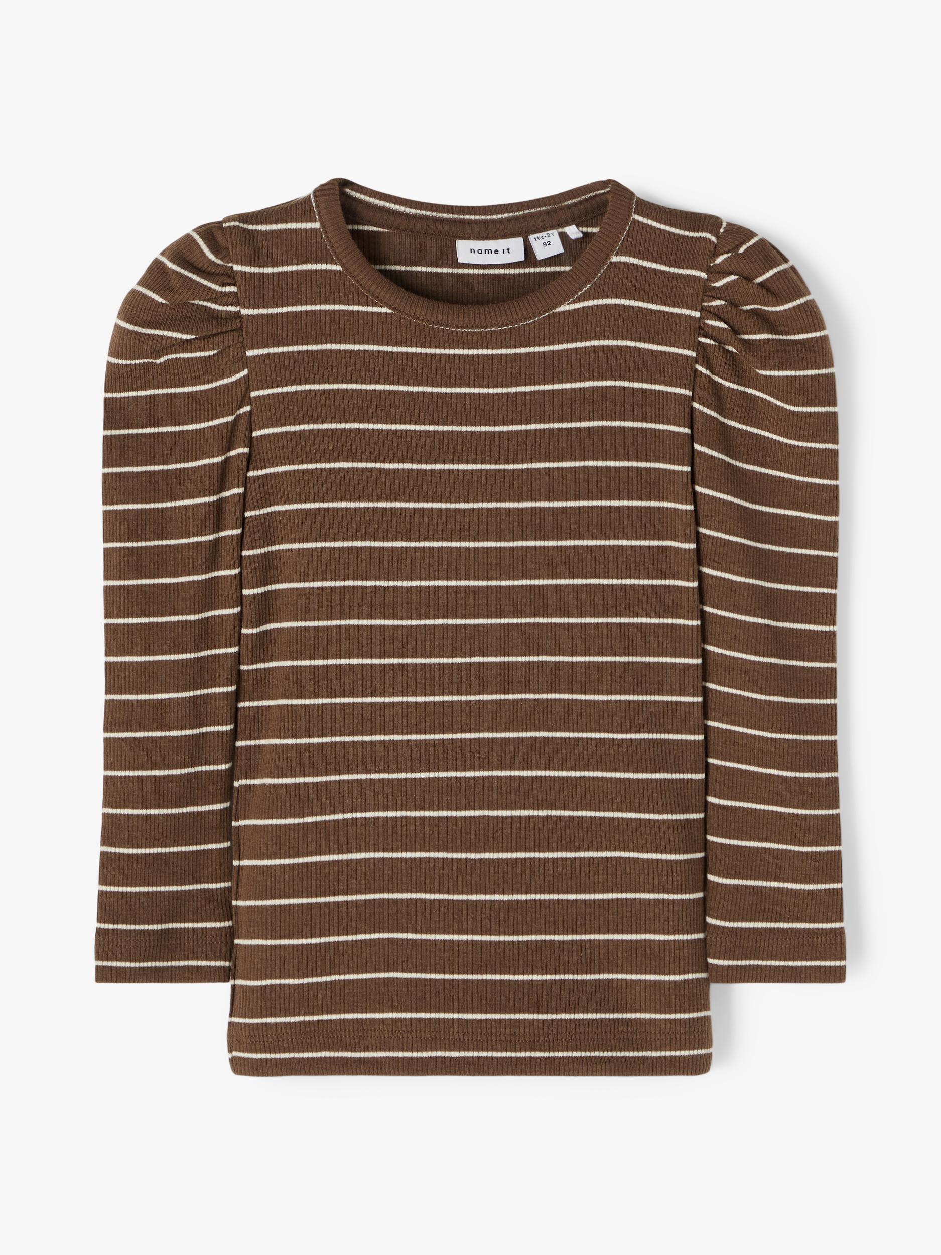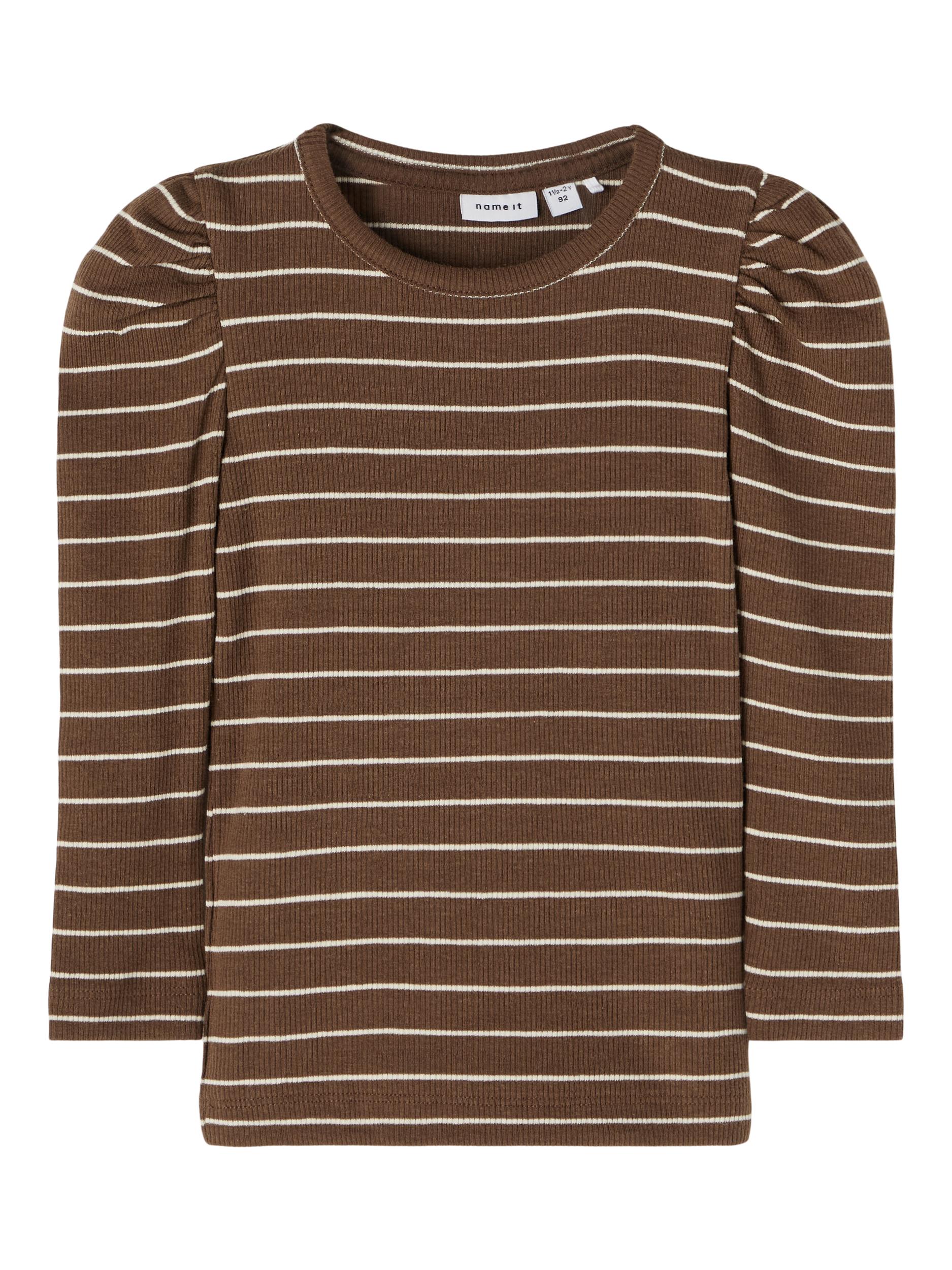 Randig brunvit långärmad tröja i ribbad kvalitet. Superskön.