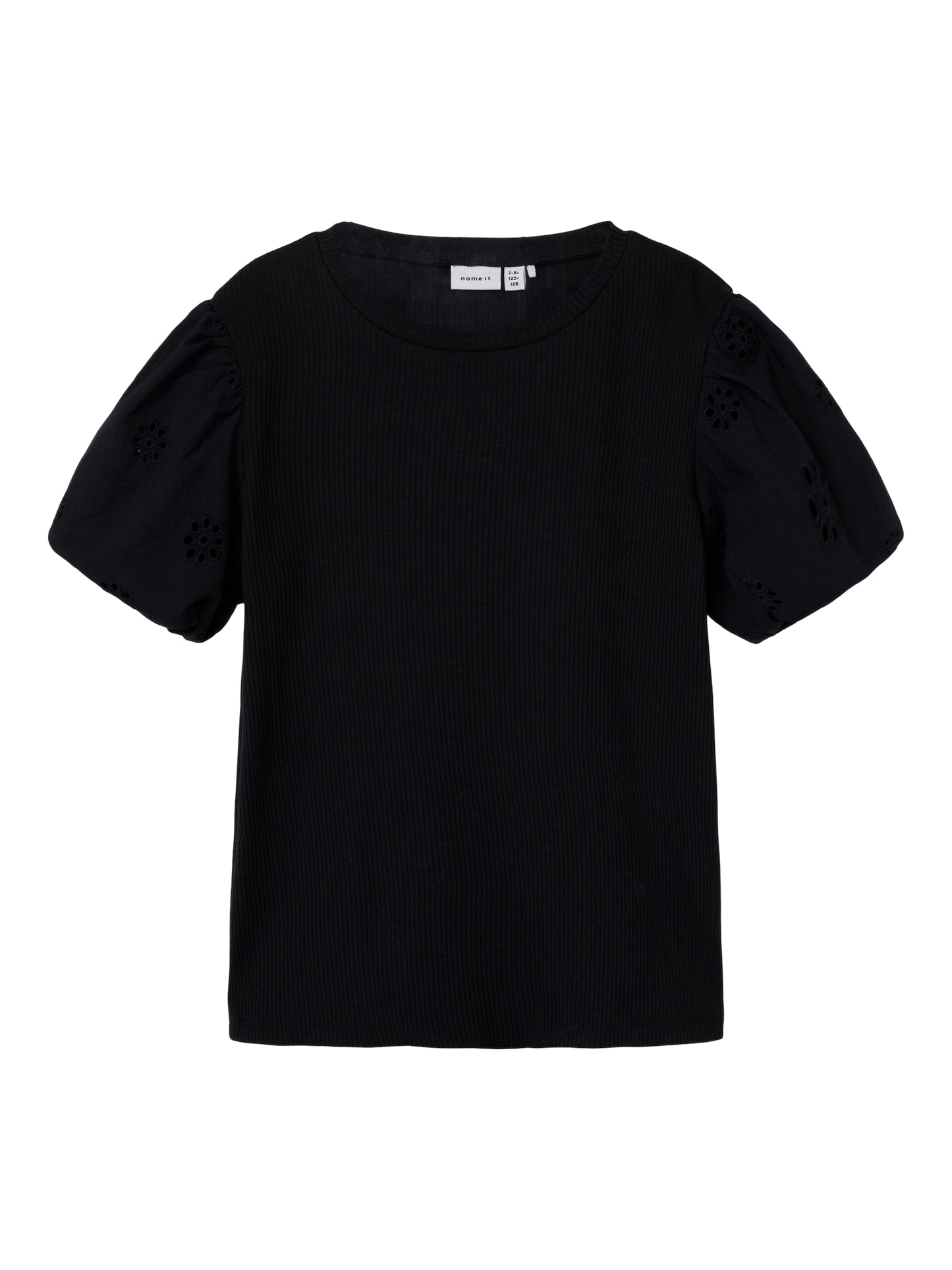 Produkttyp: T-shirt Hals: Rund hals Ärm: Kort ärm Ärmar: Ballongärmar Muddar: Elastiska ärmslut Extra detaljer: Utskärningsdetalj Passform: Slim Fit