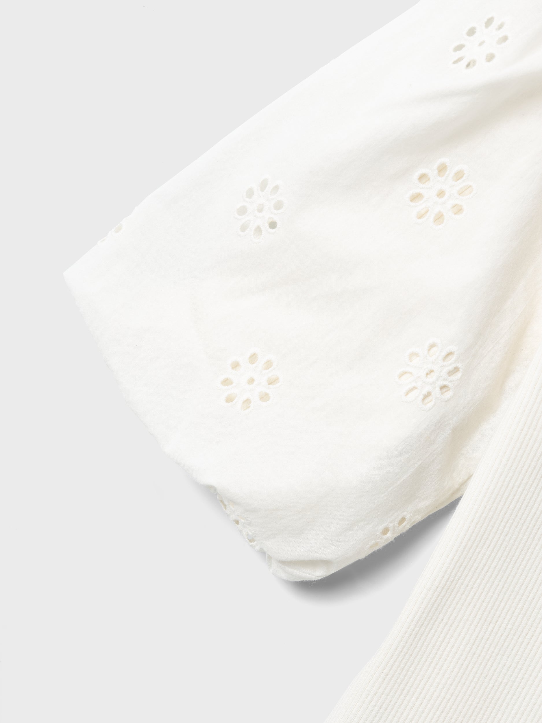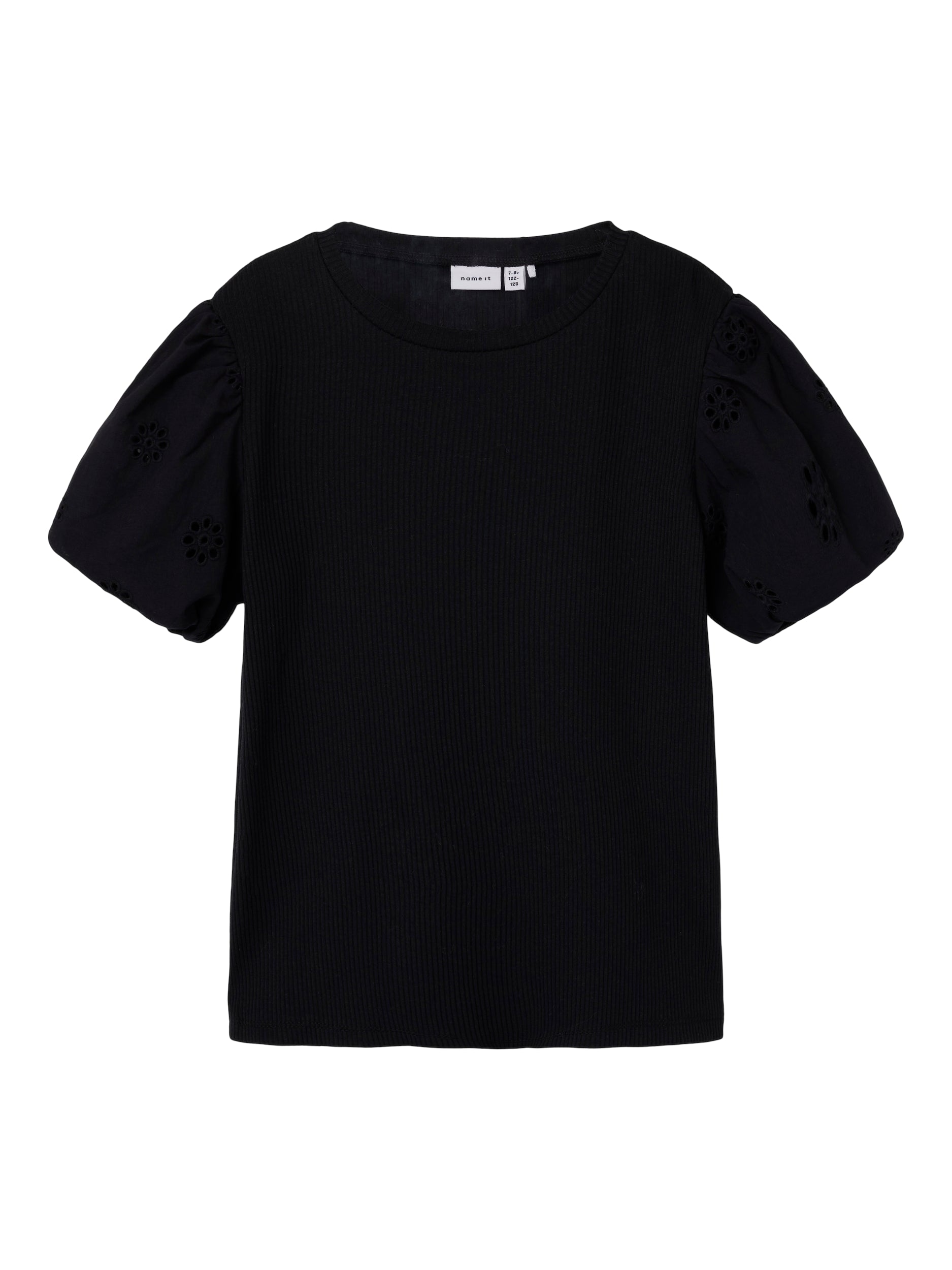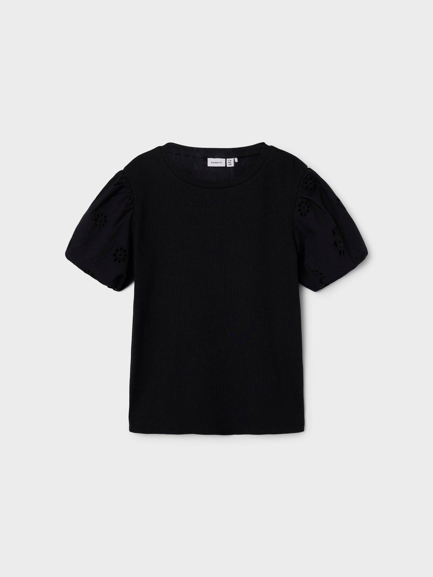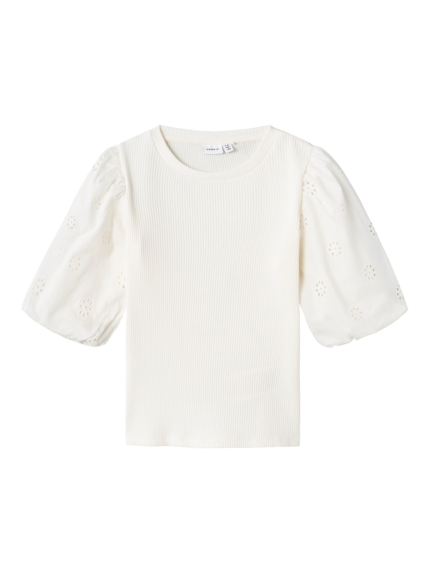 Söt kortärmad tröja som passar både vardag och fest. Ribbad kvaliet, men ärmar i en vävd spetskvalitet. Vi älskar denna tröja helt enkelt. Ribbstickad har ett vertikalt, randigt mönster och bra elasticitet för en skön känsla och en tidlös look.