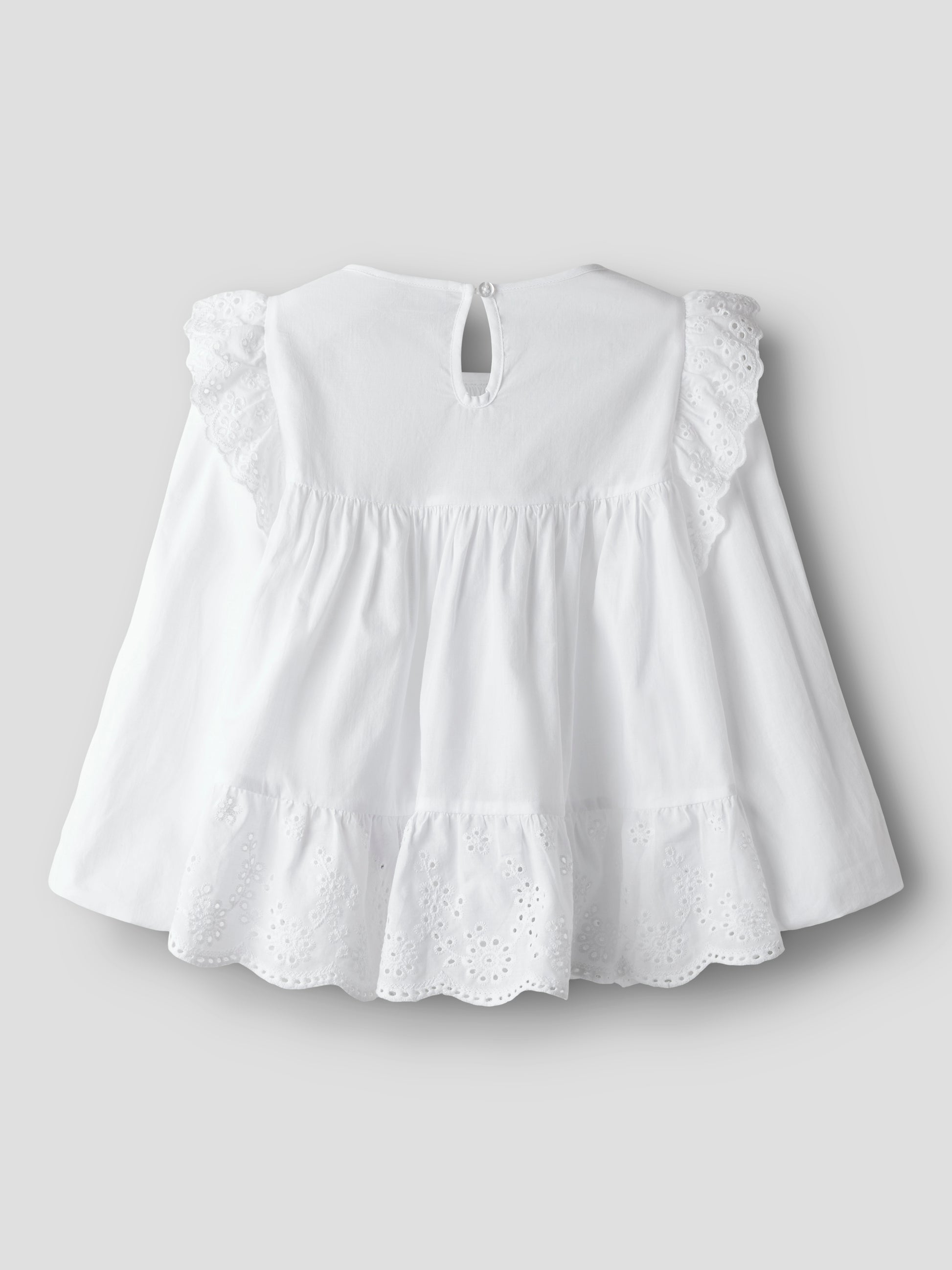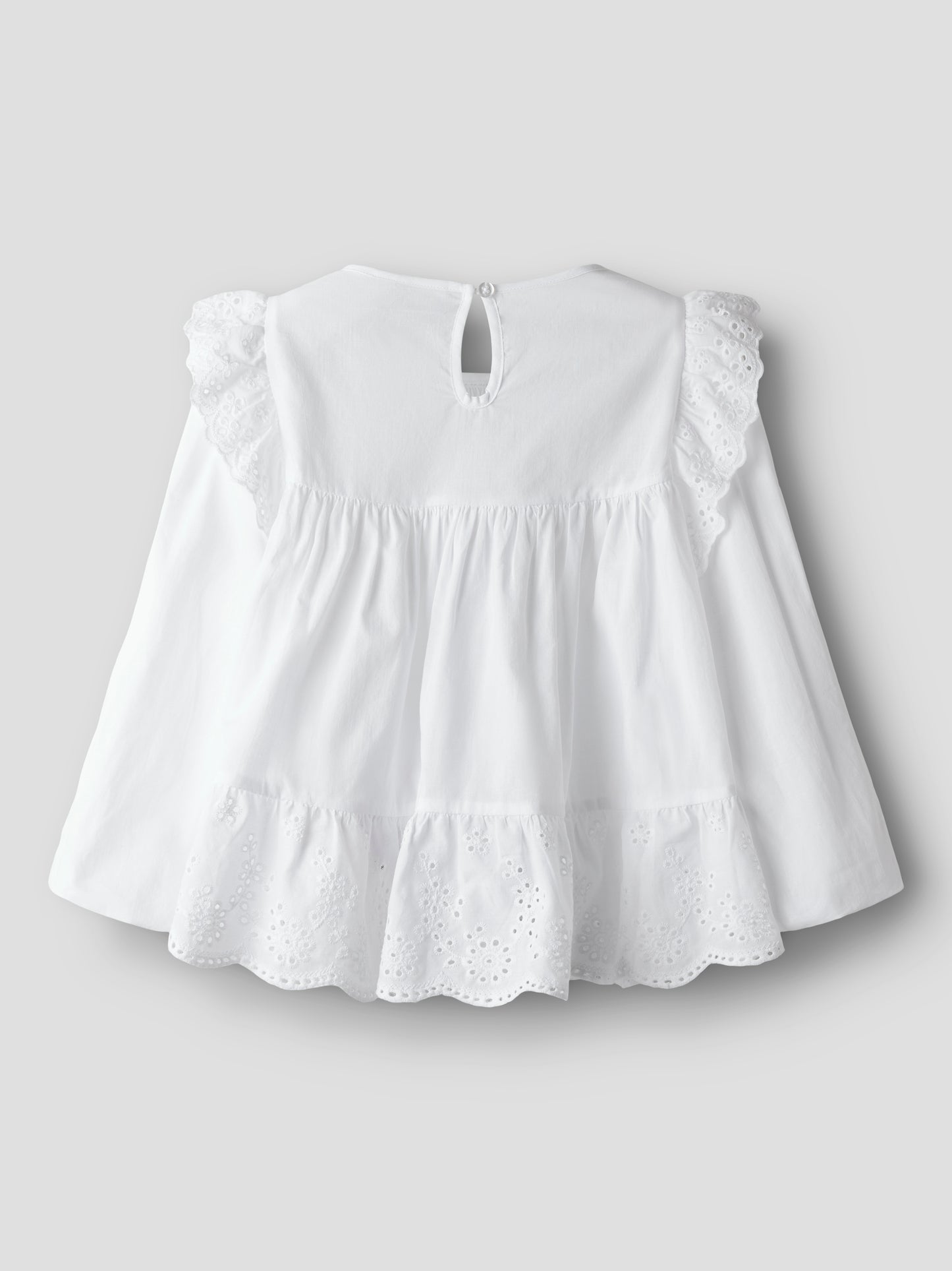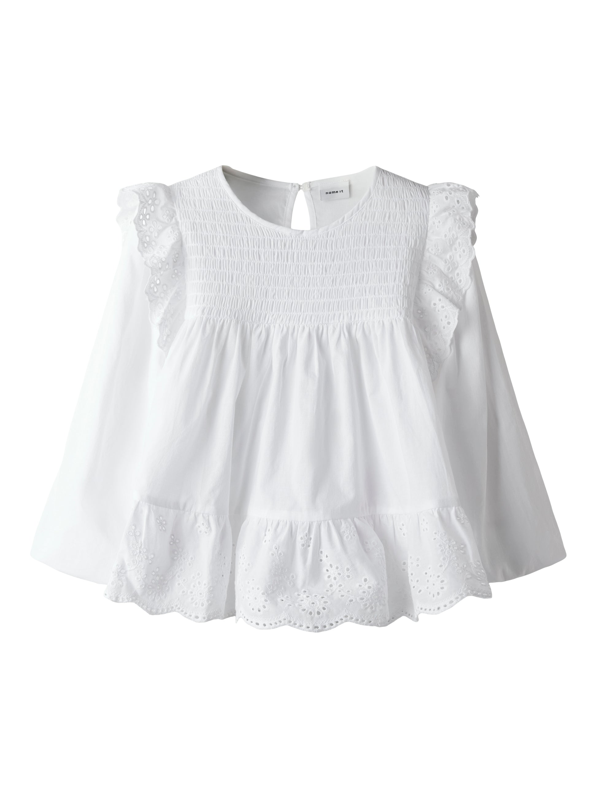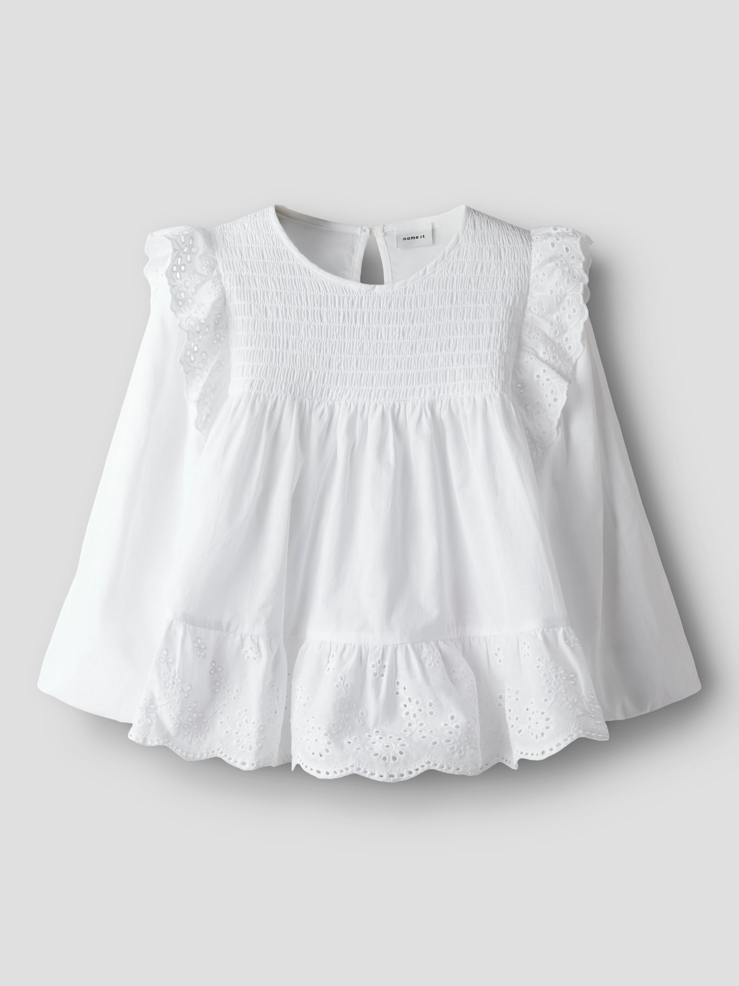 Produkttyp: Skjorta Hals: Skjortkrage Ärm: Långa ärmar Ärmar: Ballongärmar Stängning: Knäppning med knapp och ögla Extra detaljer: krusiduller, spetsdetalj, smockdetalj Passform: Normal passform
